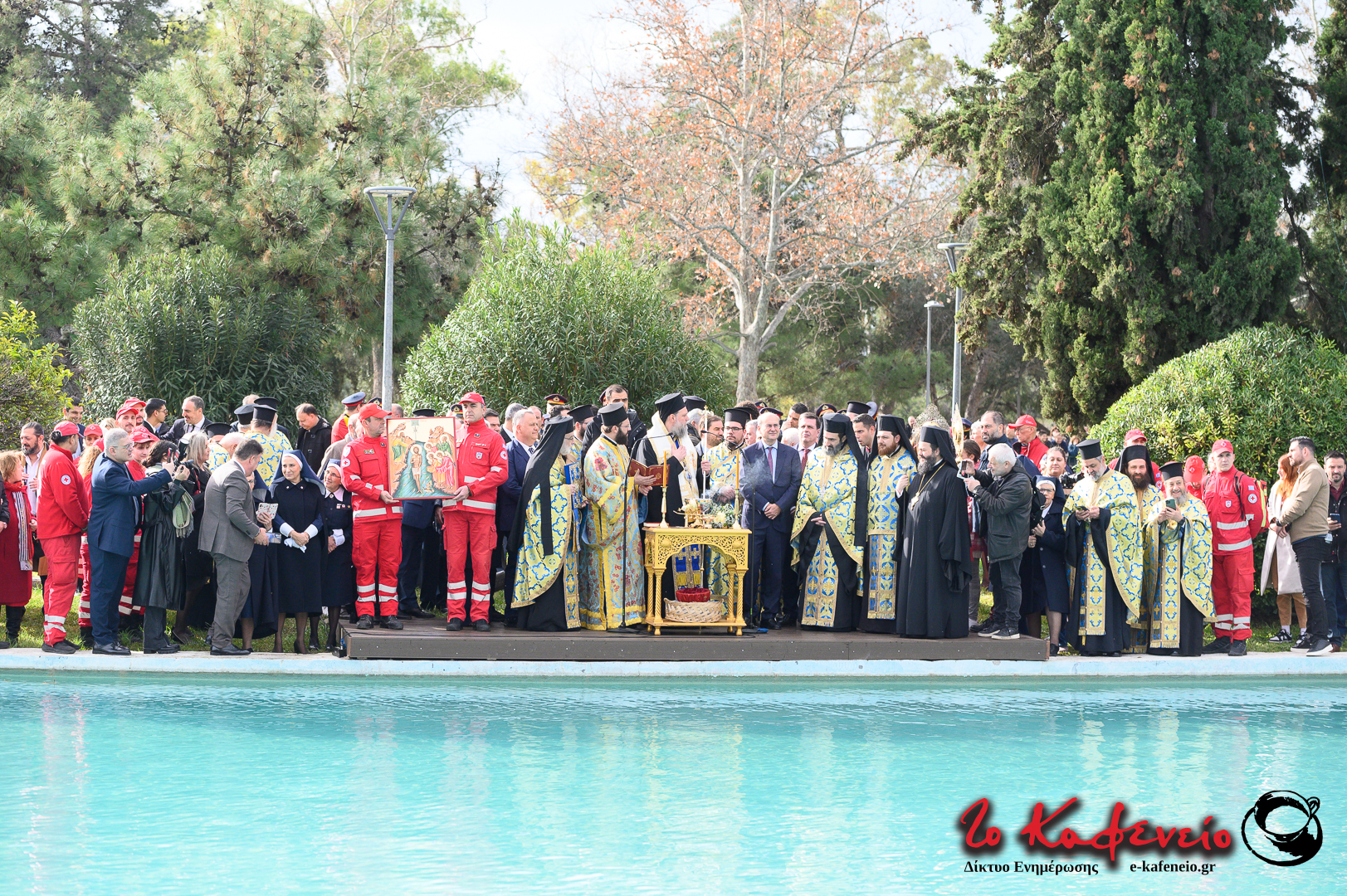 Την τελετή του αγιασμού των υδάτων τέλεσε ο Σεβασμιώτατος Μητροπολίτης Νέας Ιωνίας, Φιλαδελφείας, Ηρακλείου και Χαλκηδόνος κ.κ. Γαβριήλ, πλαισιωμένος από τον Άγιο Πρωτοσύγκελο της Μητρόπολης, Πανοσιολογιότατο Αρχιμανδρίτη κ.κ. Επιφάνιο, καθώς και τον Γενικό Αρχιερατικό Επίτροπο, Πανοσιολογιότατο Αρχιμανδρίτη κ.κ. Τιμόθεο Ηλιάκη.
