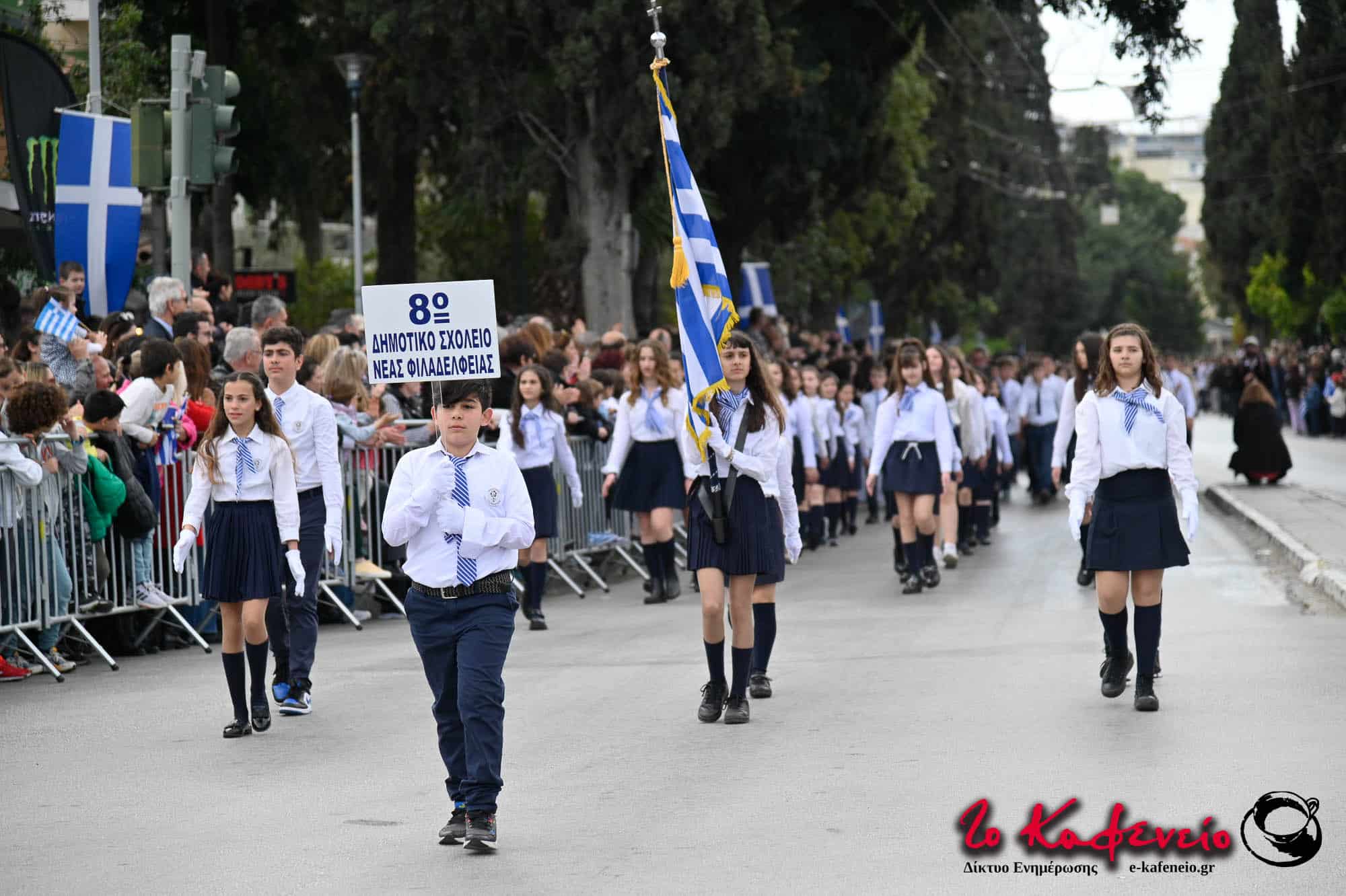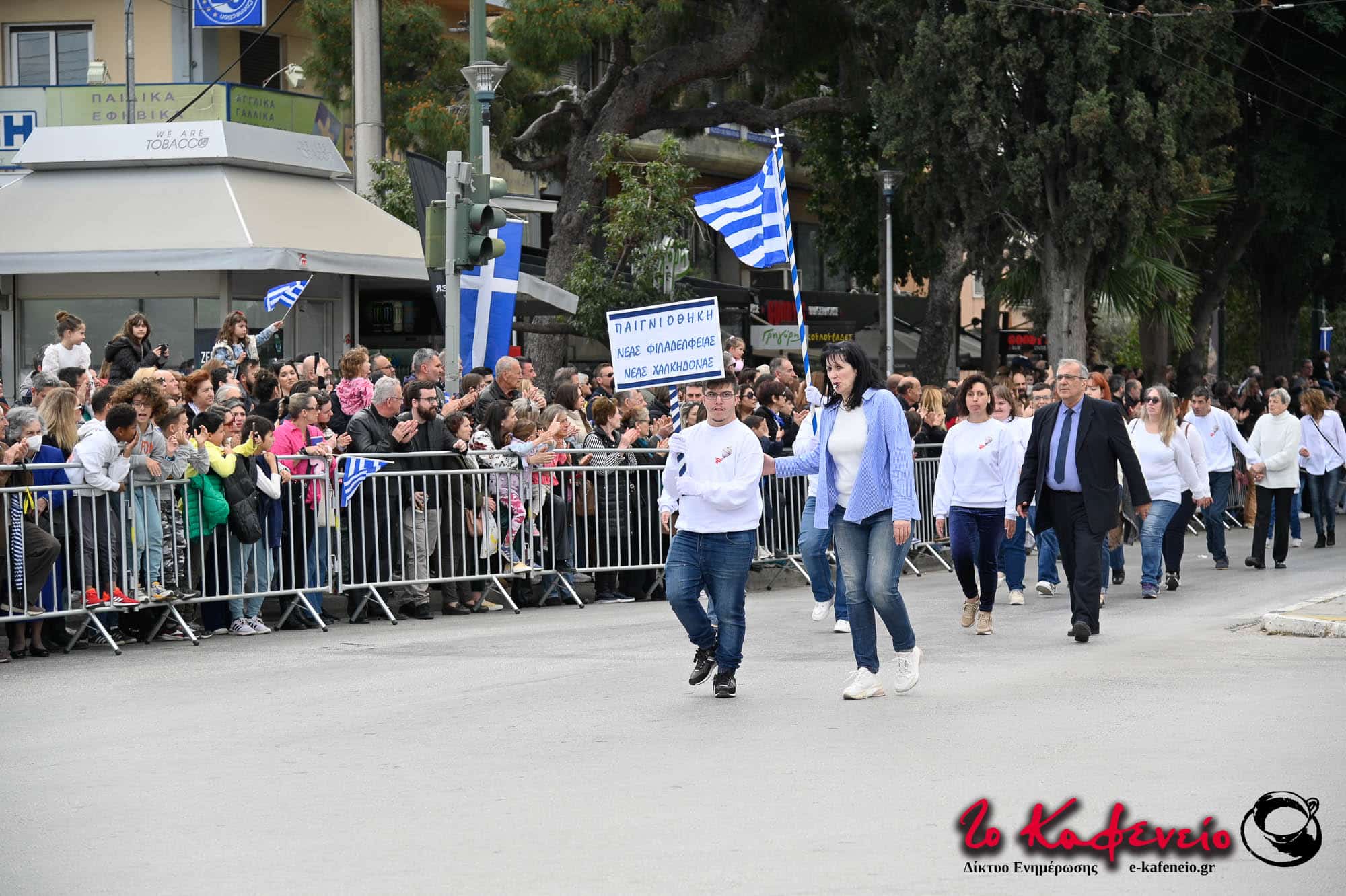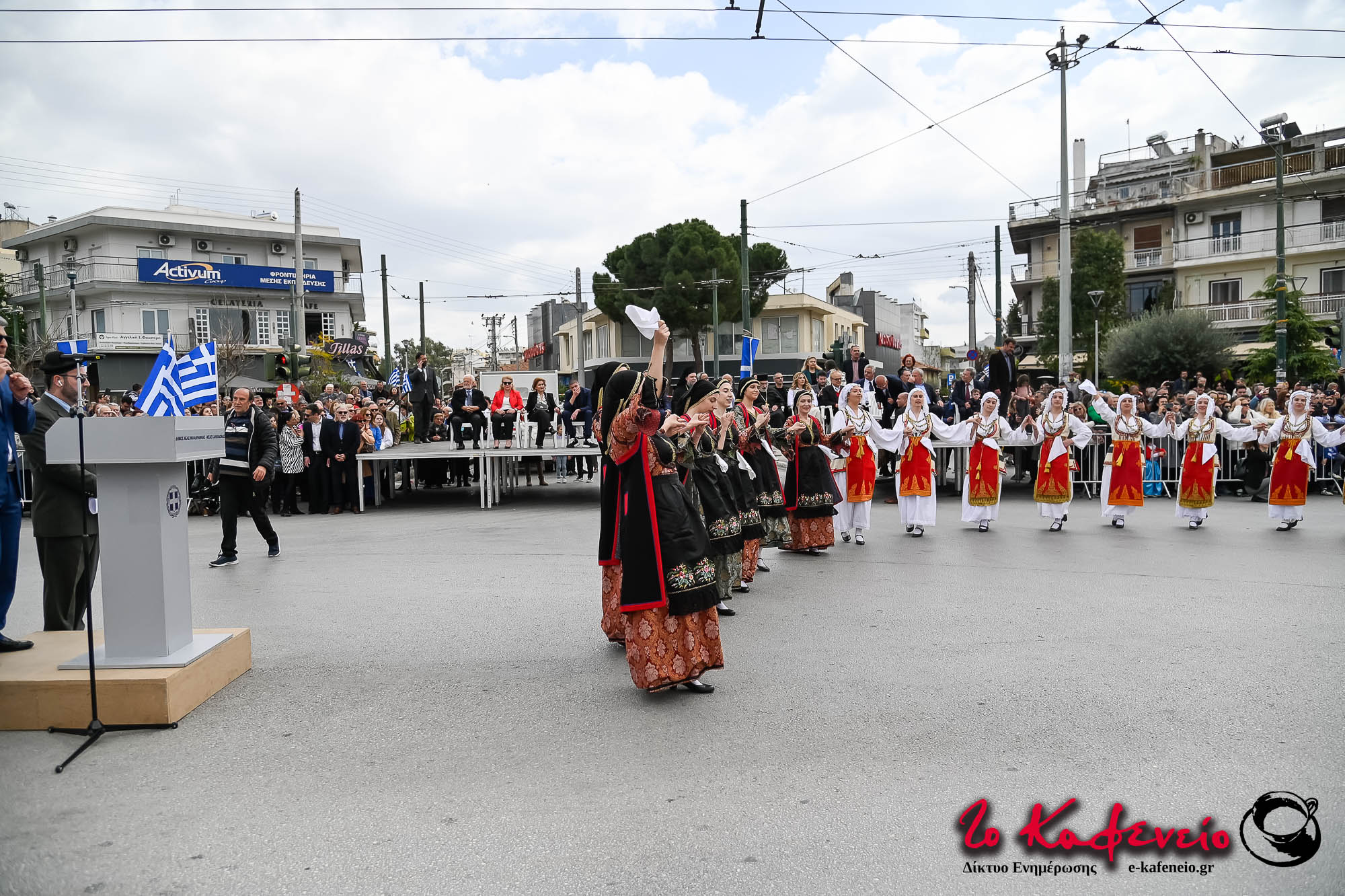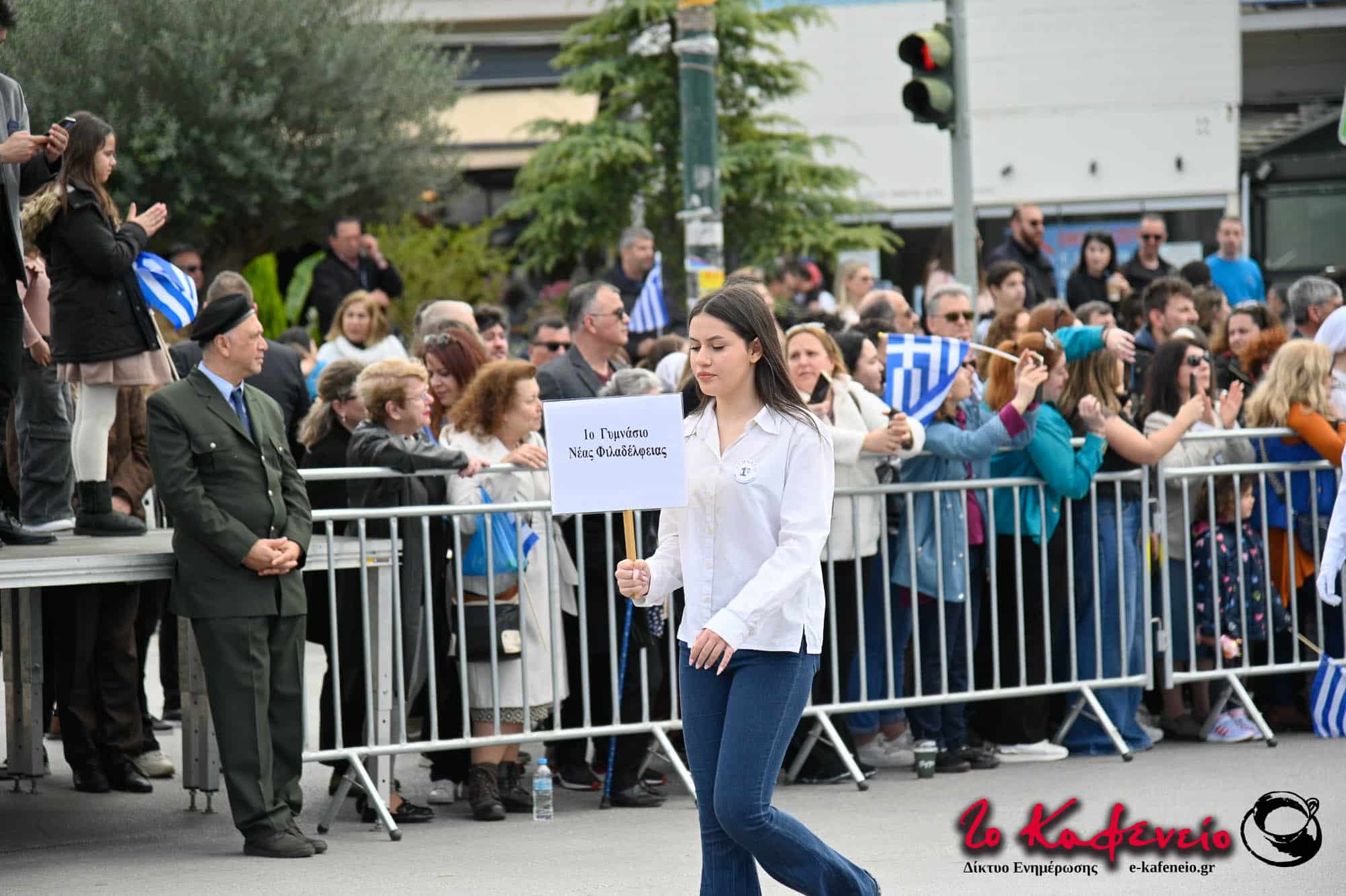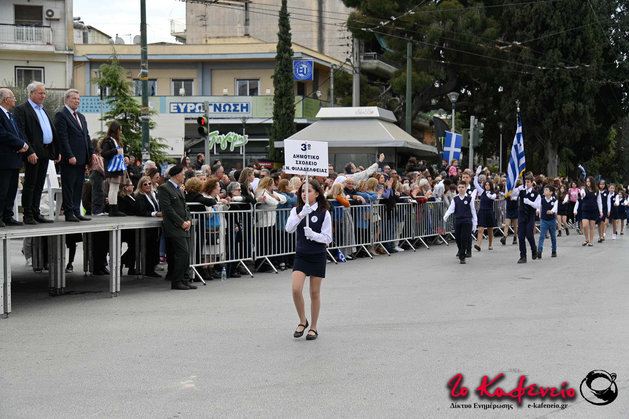 Οι εκδηλώσεις συνεχίστηκαν στην κεντρική λεωφόρου, με το χορευτικό τμήμα του δήμου να παρουσιάζει παραδοσιακούς χορούς από διάφορα μέρη της Ελλάδας και τους συλλόγους και τα σχολεία της πόλης μας να παρελαύνουν υπό την εκφώνηση του τελετάρχη κ. Μπέτζελου. Ξεχωριστή παρουσία φέτος είχε η σημαία για τα 100 χρόνια από την ίδρυση της Νέας Φιλαδέλφειας – Νέας Χαλκηδόνας.