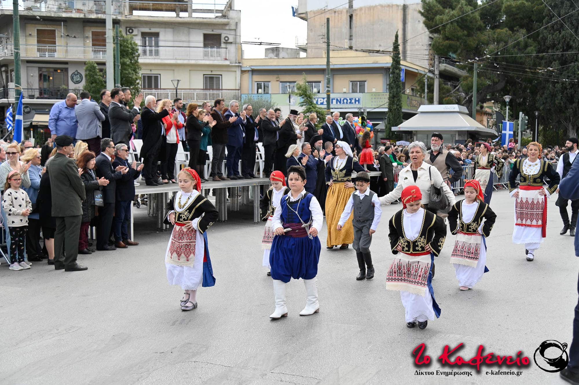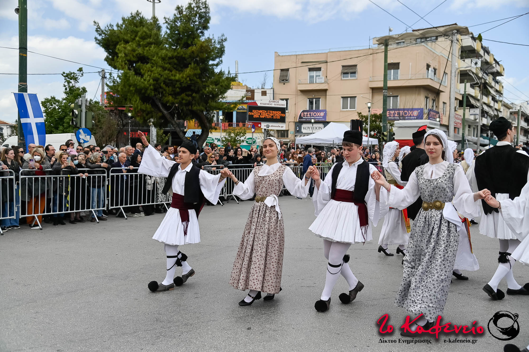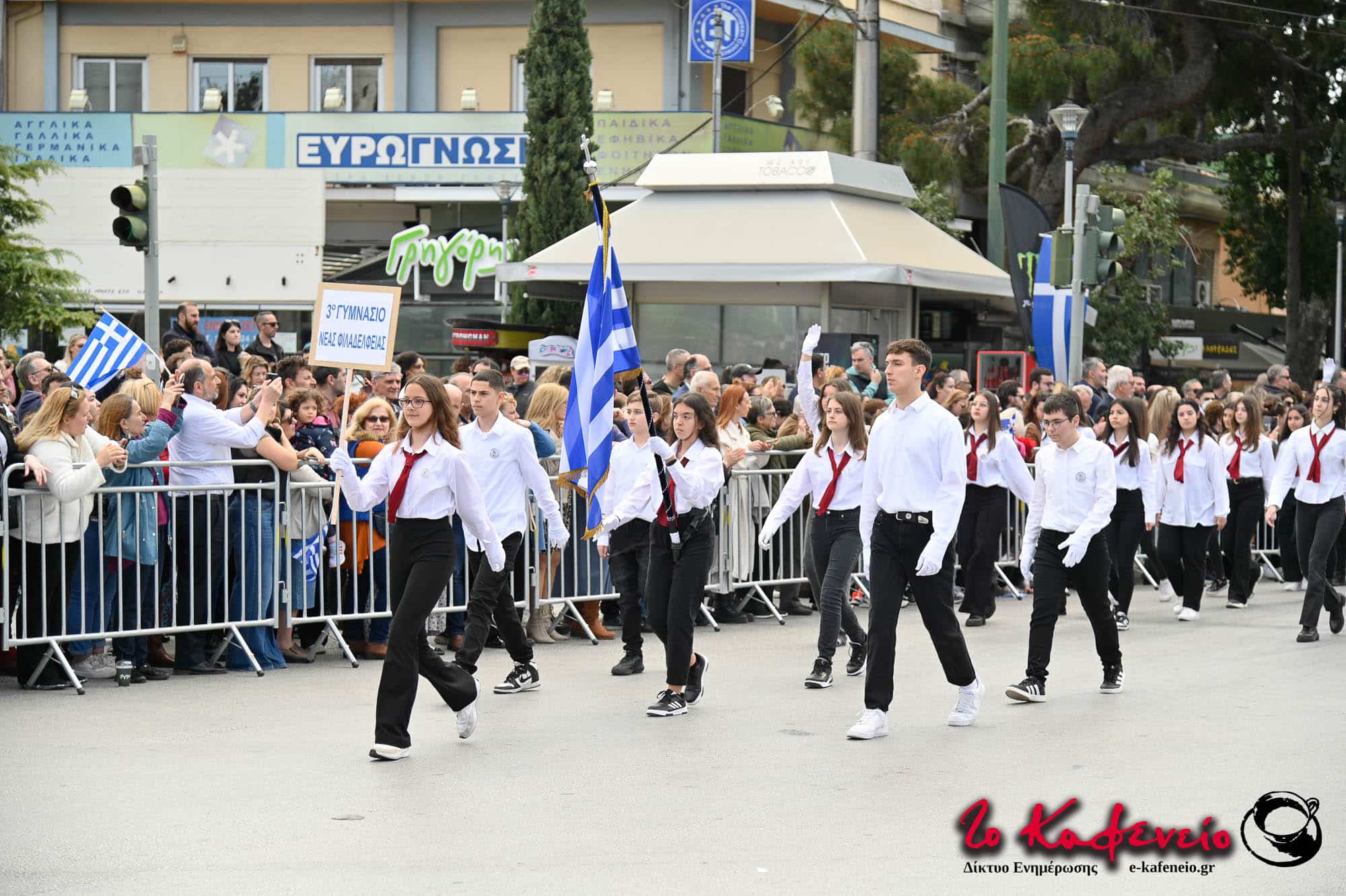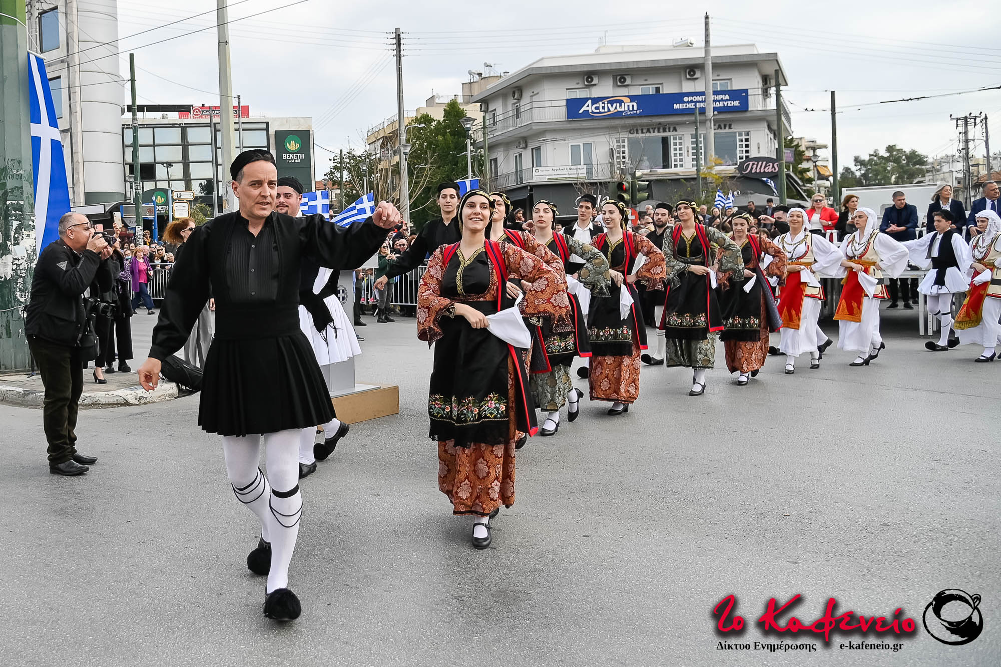 Οι εκδηλώσεις συνεχίστηκαν στην κεντρική λεωφόρου, με το χορευτικό τμήμα του δήμου να παρουσιάζει παραδοσιακούς χορούς από διάφορα μέρη της Ελλάδας και τους συλλόγους και τα σχολεία της πόλης μας να παρελαύνουν υπό την εκφώνηση του τελετάρχη κ. Μπέτζελου. Ξεχωριστή παρουσία φέτος είχε η σημαία για τα 100 χρόνια από την ίδρυση της Νέας Φιλαδέλφειας – Νέας Χαλκηδόνας.