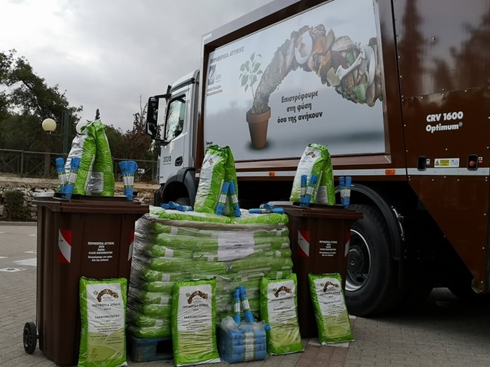 Ογδόντα (80) καφέ κάδους ανακύκλωσης, ογδόντα (80) κυτία εσωτερικής ανακύκλωσης, κομπόστ που έχει παραχθεί από οργανικά απόβλητα καθώς και ένα υπερσύγχρονο απορριμματοφόρο παρέδωσε την Τετάρτη 21 Οκτωβρίου 2020 στο Δήμο Νέας Φιλαδέλφειας – Νέας Χαλκηδόνας, ο Περιφερειάρχης Αττικής, κ. Γιώργος Πατούλης.