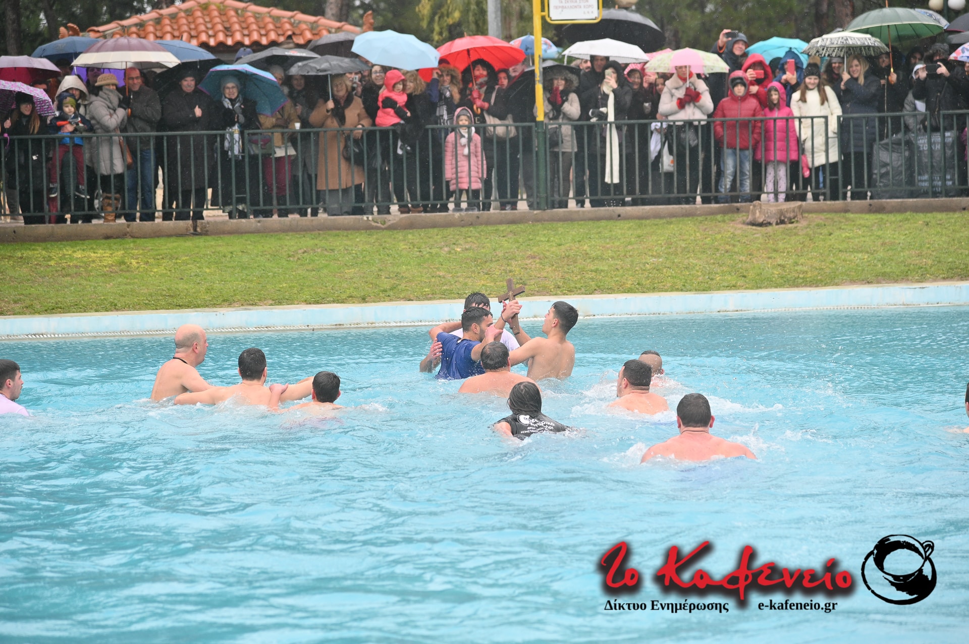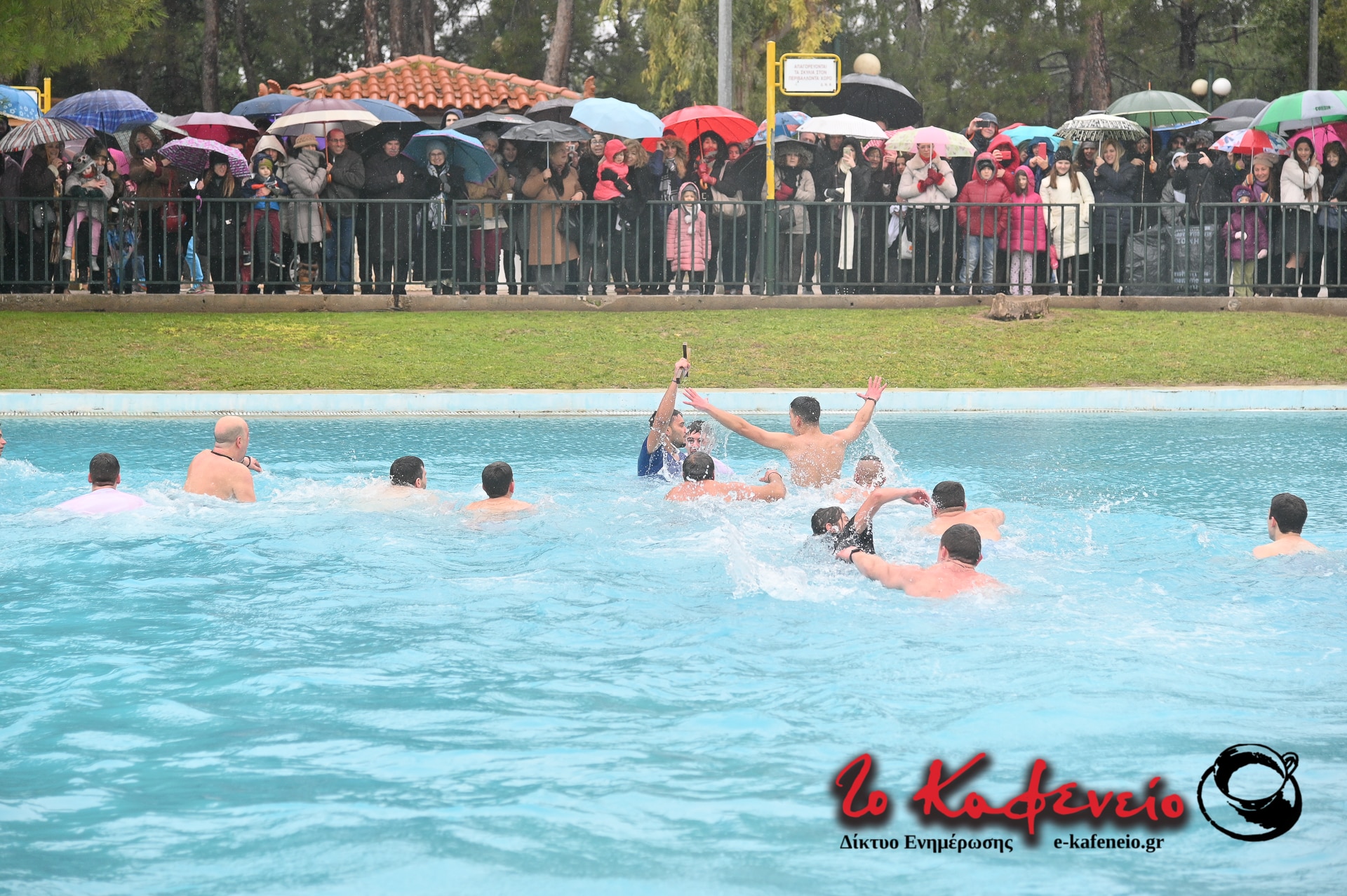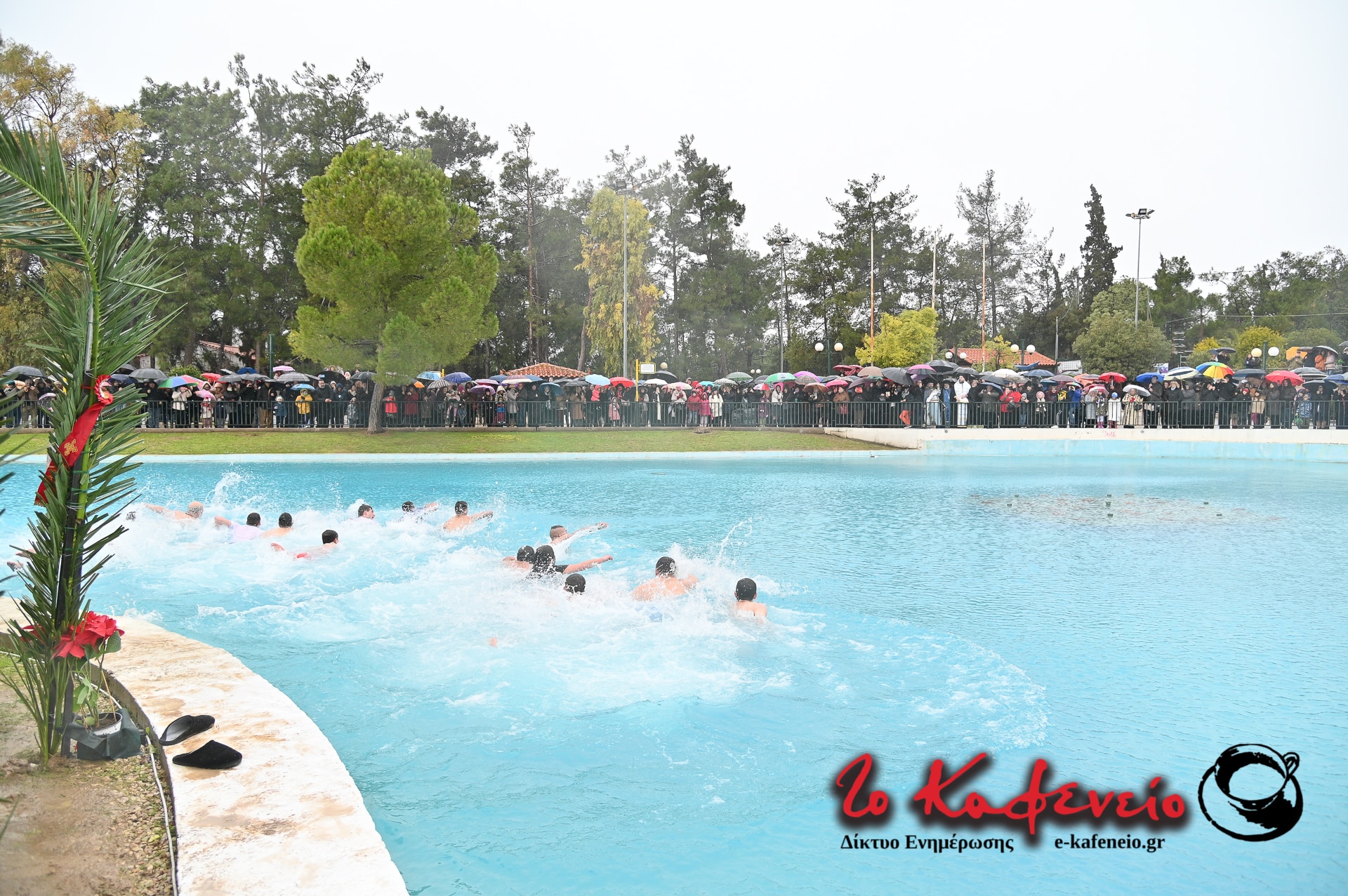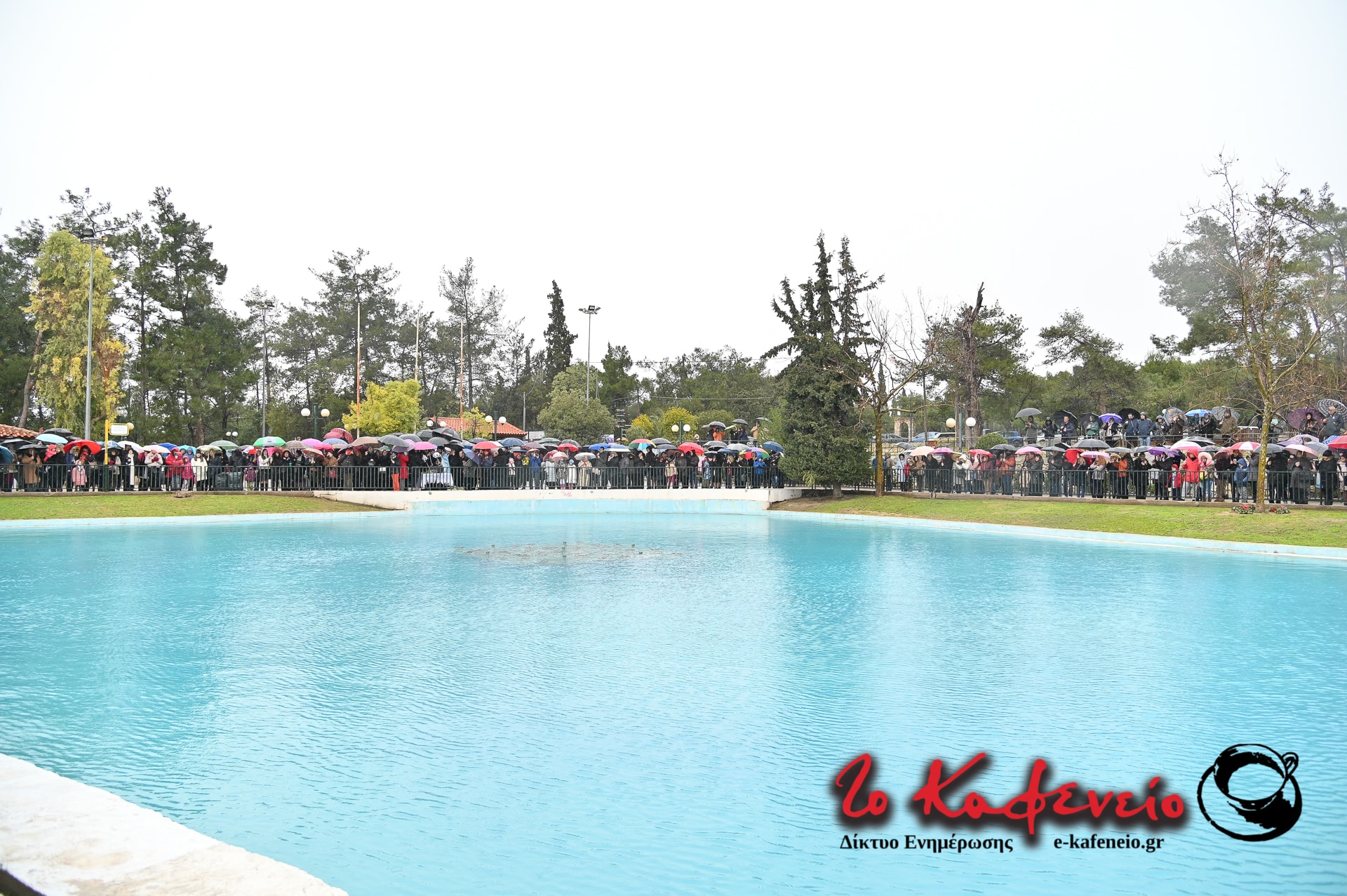 Ακολούθησε η καθιερωμένη ρήψη του Τιμίου Σταυρού στην λίμνη του Άλσους, παρουσία πλήθους πιστών, παρά το κρύο και την βροχή.