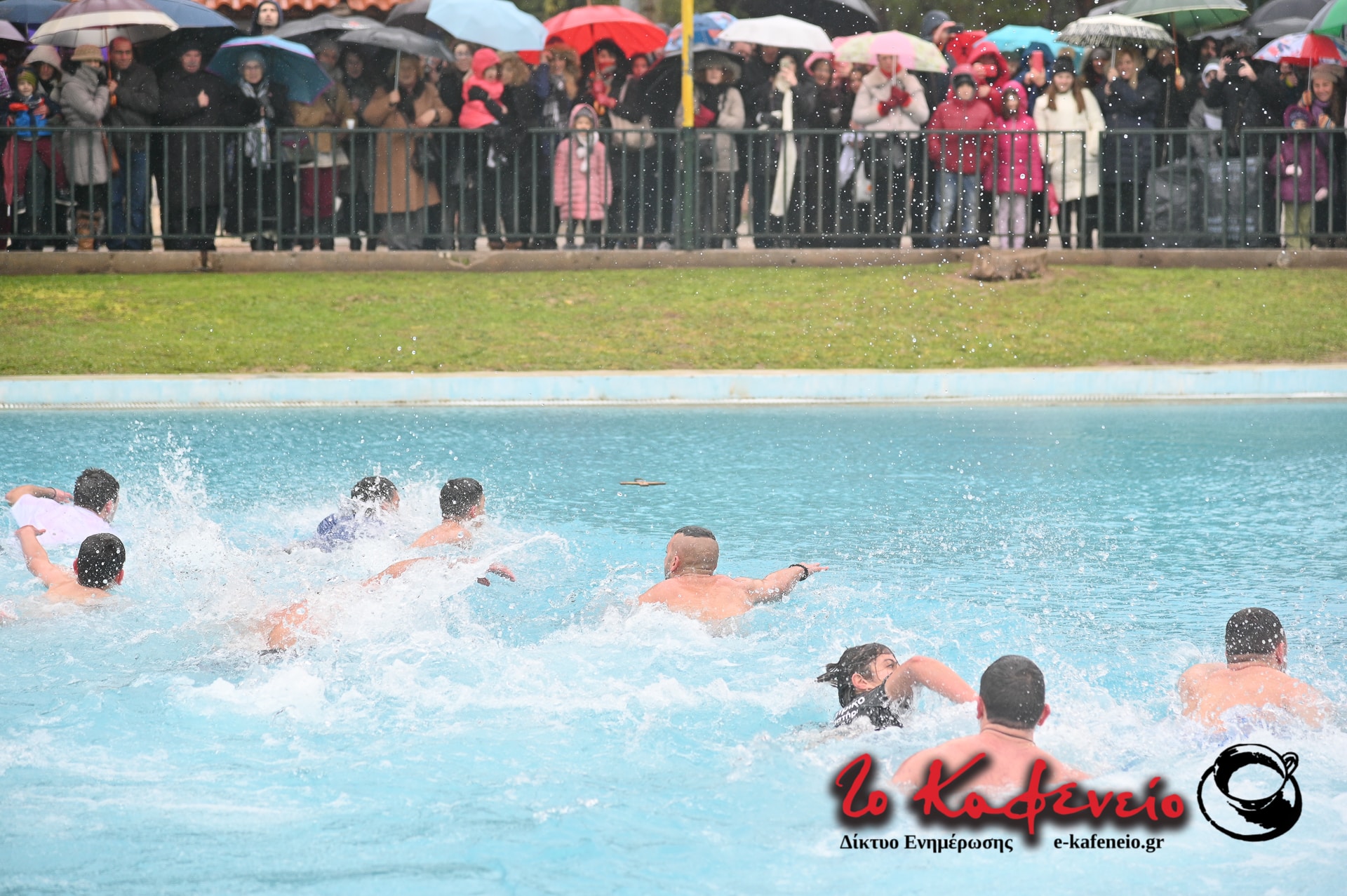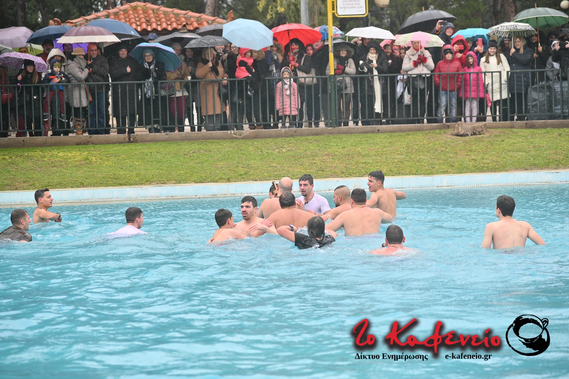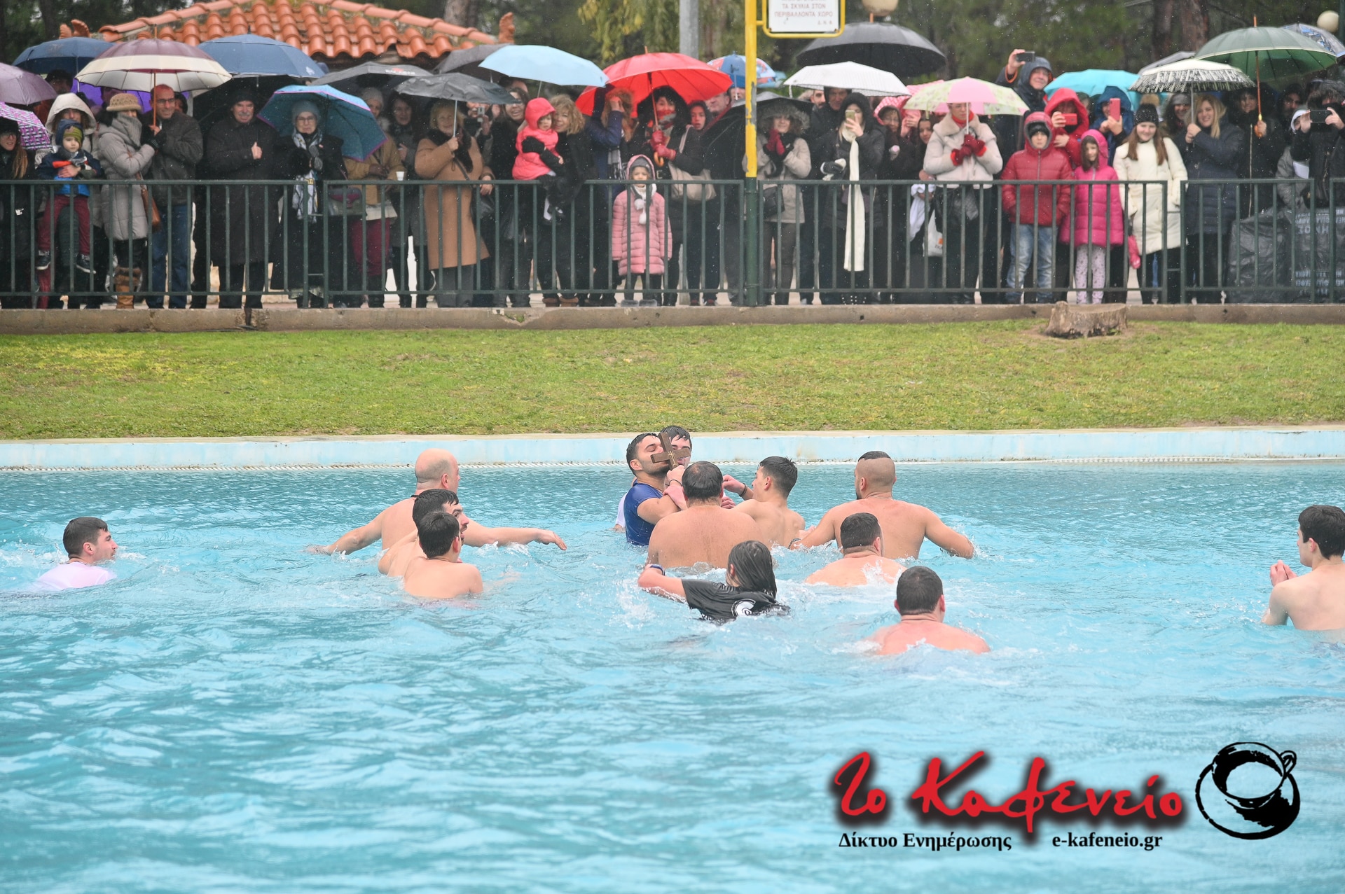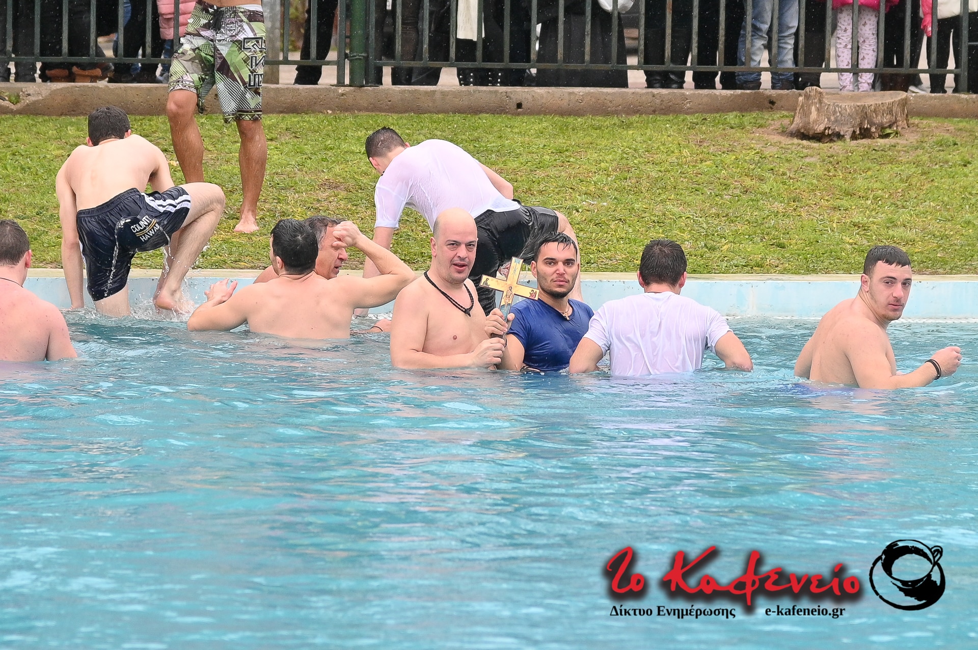 Ακολούθησε η καθιερωμένη ρήψη του Τιμίου Σταυρού στην λίμνη του Άλσους, παρουσία πλήθους πιστών, παρά το κρύο και την βροχή.