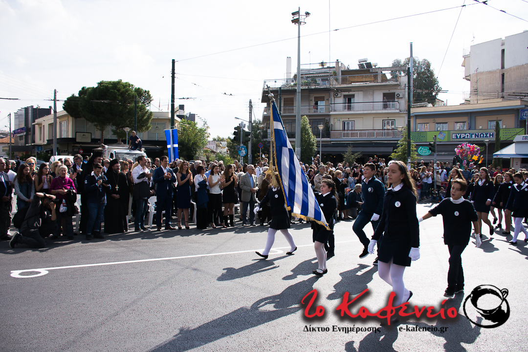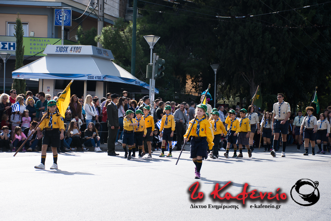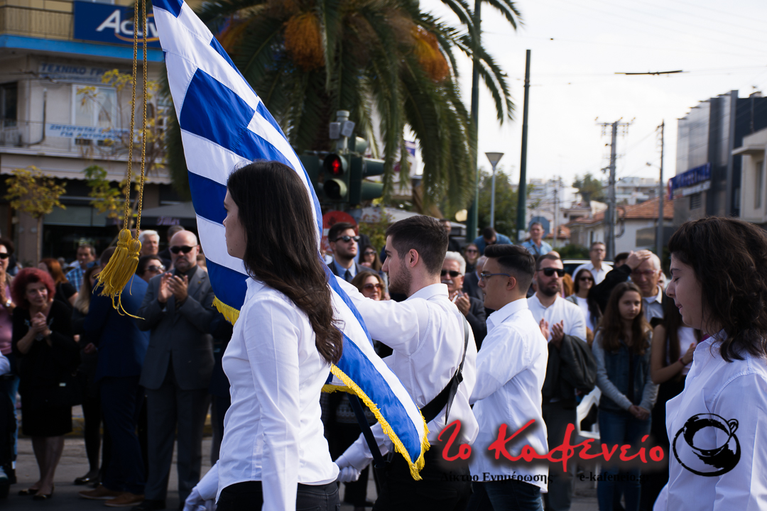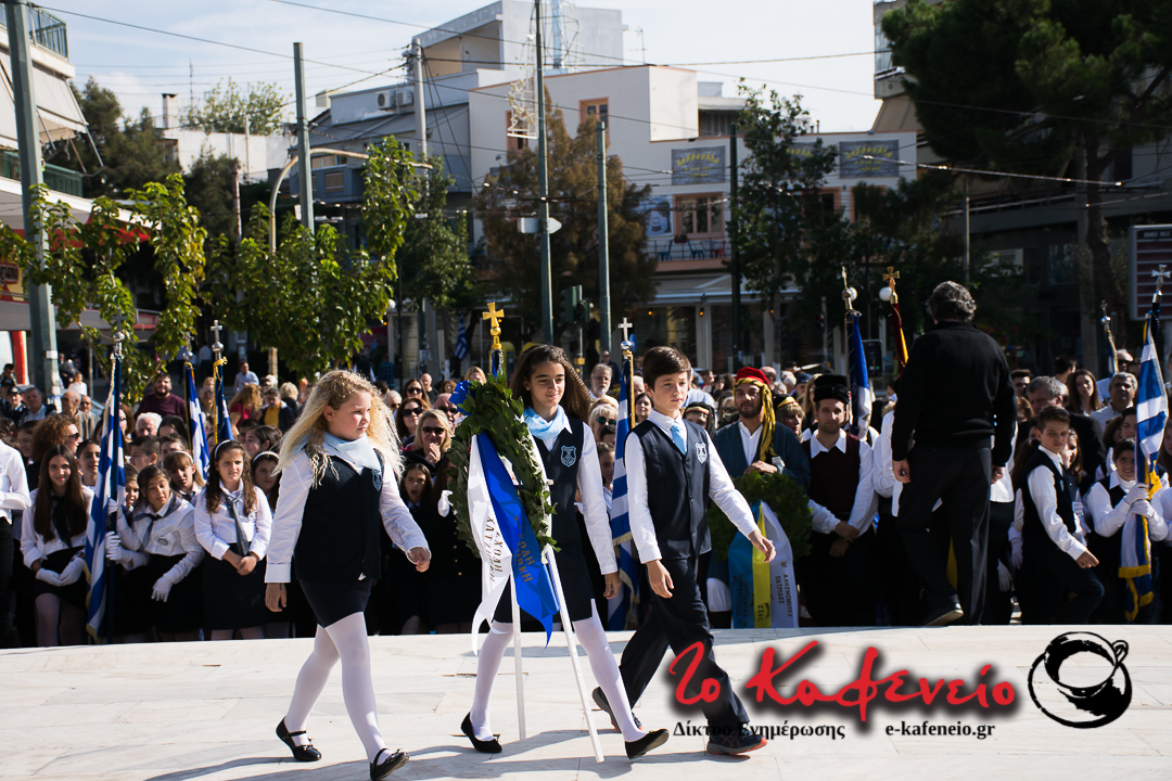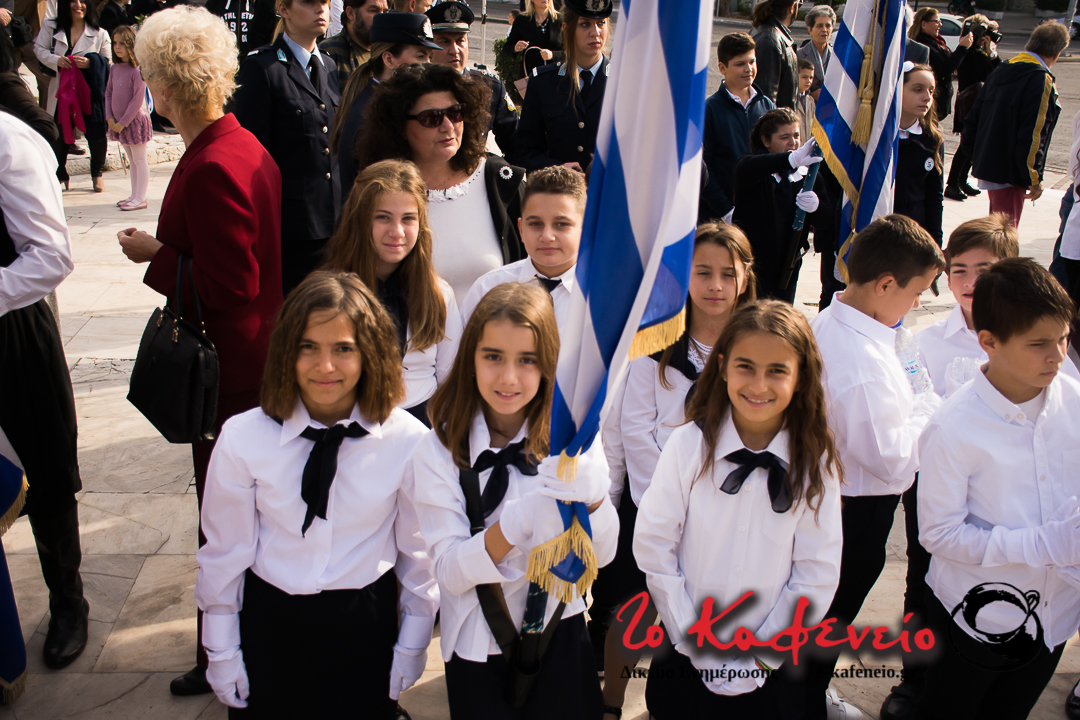 Ο εορτασμός της επετείου του “ΟΧΙ” ολοκληρώθηκε με την καθιερωμένη παρέλαση Μαθητών, Σπουδαστών, Οδηγών, Προσκόπων και Εθνικών Οργανώσεων, μπροστά από τους επισήμους (πλατεία Πατριάρχου).