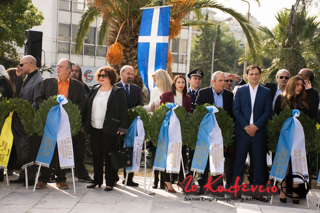 Τον πανηγυρικό λόγο εκφώνησε ο Δήμαρχος Ν. Φιλαδέλφειας – Ν. Χαλκηδόνας κ. Α. Βασιλόπουλος, ο οποίος μεταξύ άλλων ανέφερε ότι παρά το λογικό θα ήταν να εορτάζουμε τη λήξη του πολέμου εμείς γιορτάζουμε την έναρξη, γεγονός παράδοξο αλλά αναγκαίο.