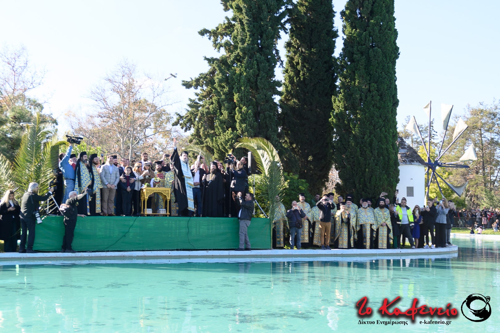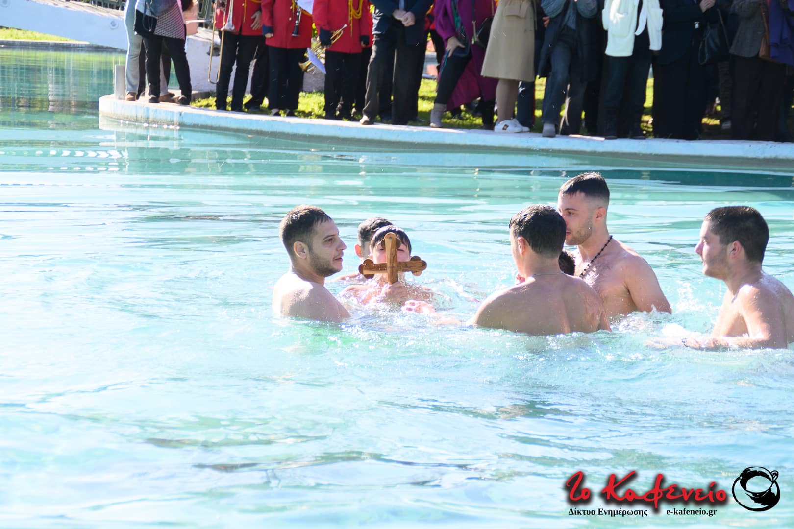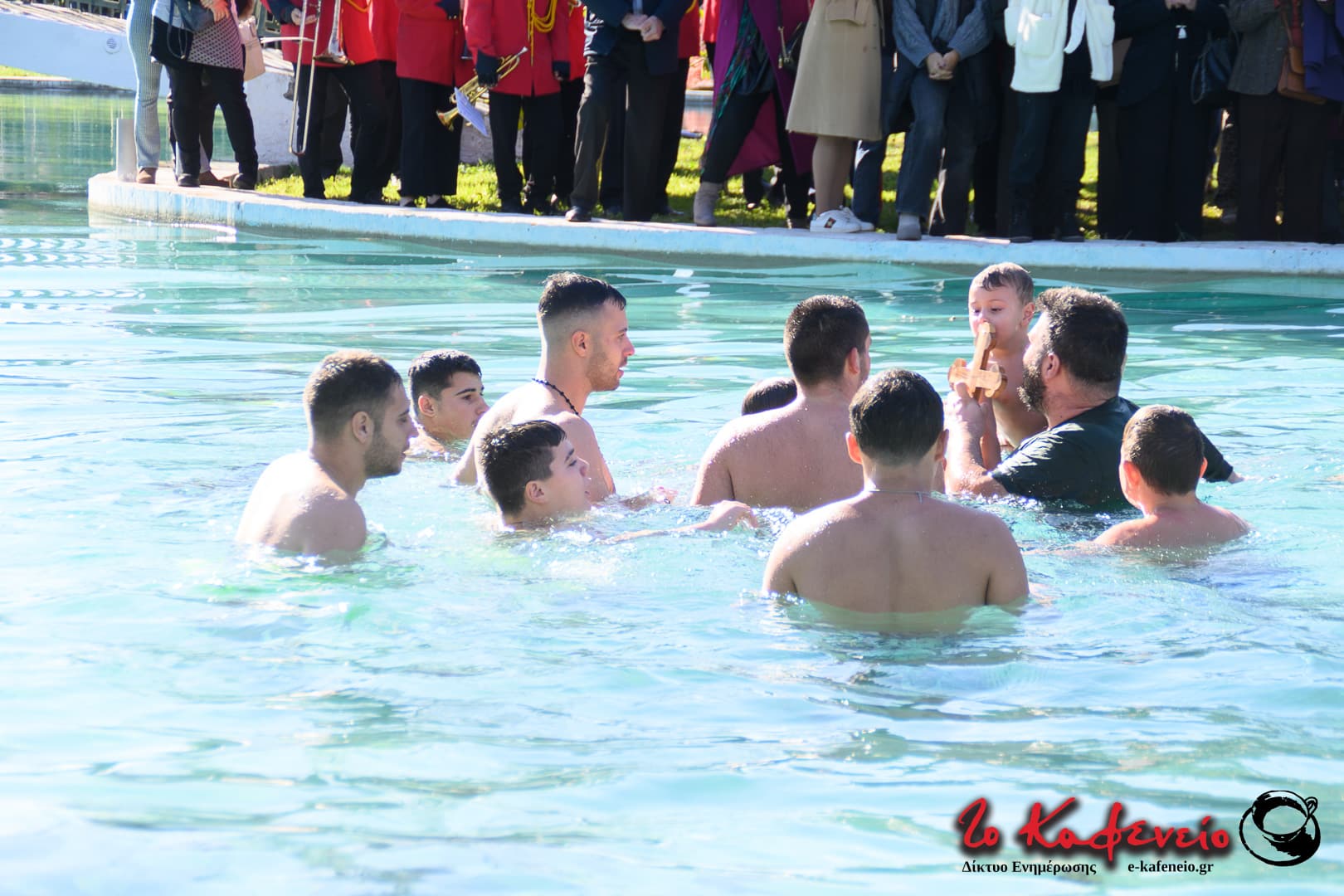 Στην πλημμυρισμένη από κόσμο λίμνη του άλσους πραγματοποιήθηκε η ρίψη του σταυρού, τον οποίο έπιασε ο μικρός Χρήστος.