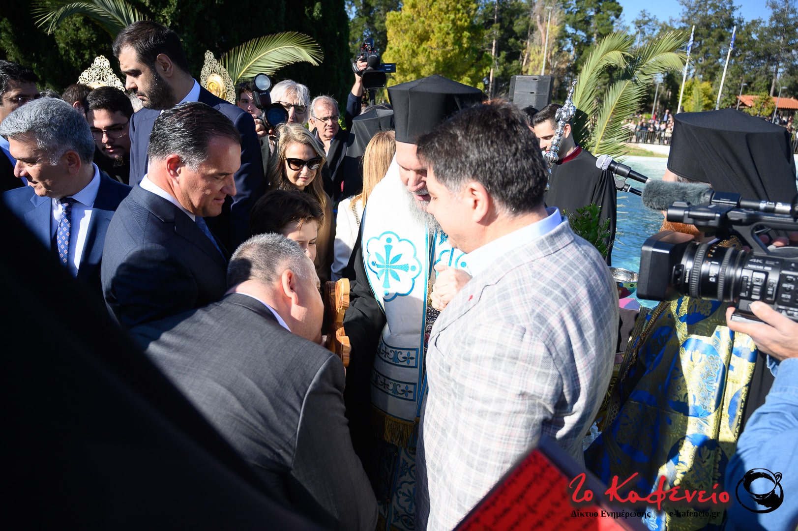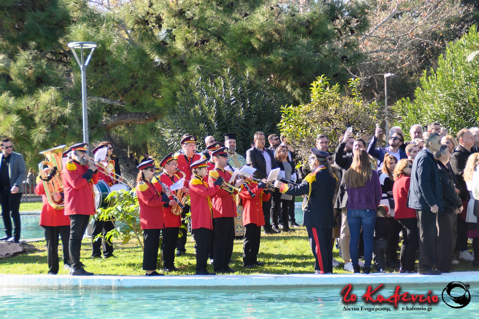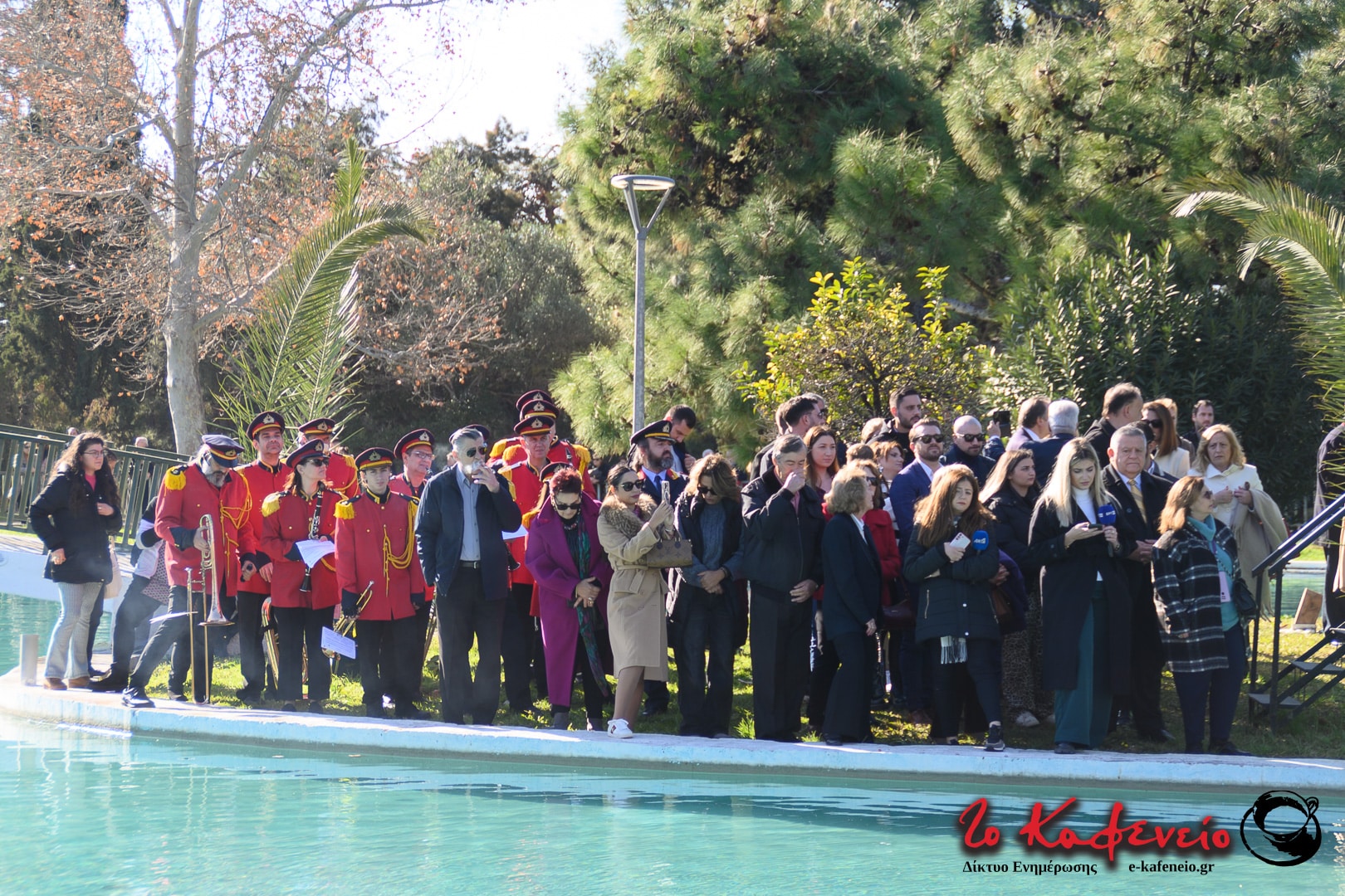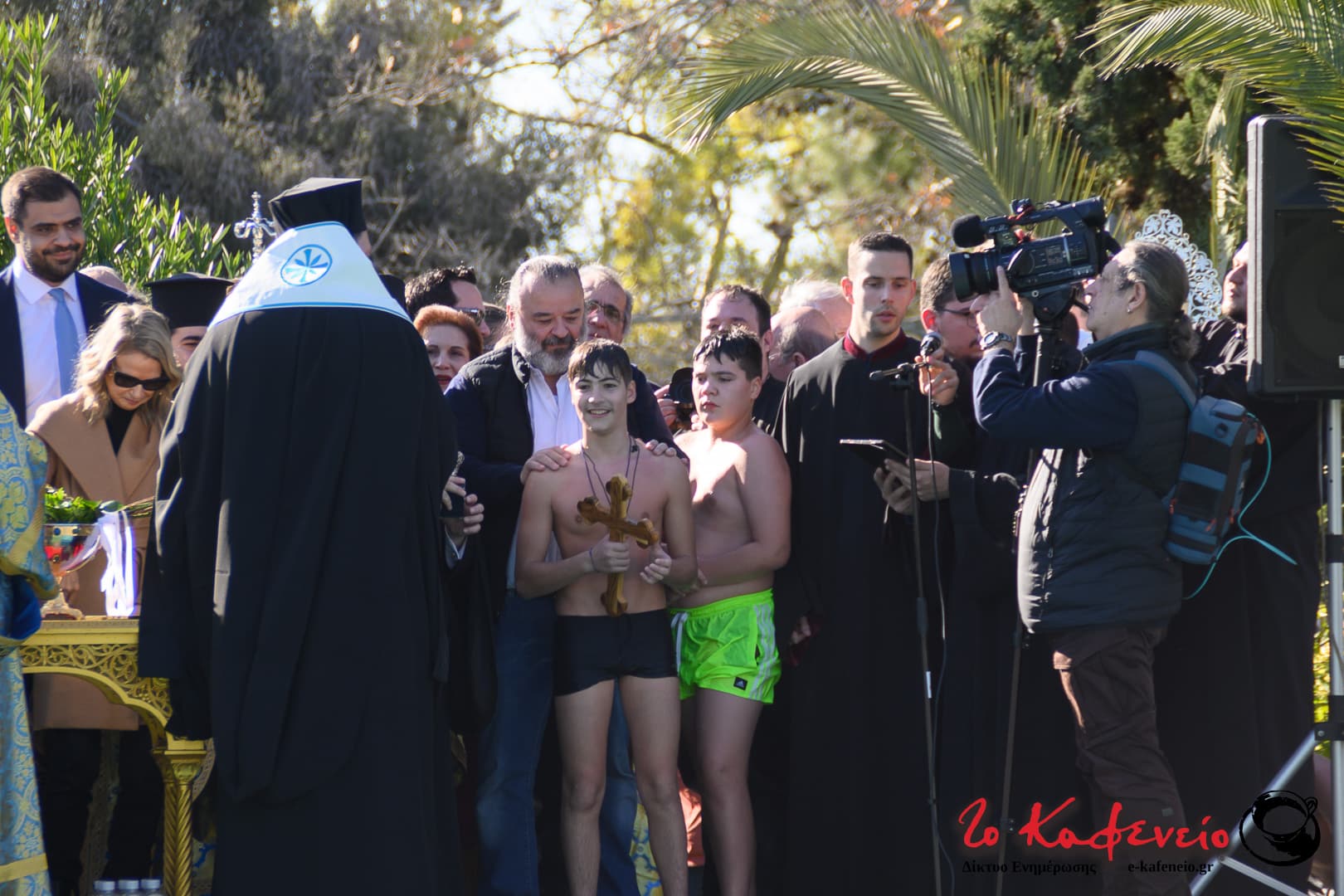 Στην πλημμυρισμένη από κόσμο λίμνη του άλσους πραγματοποιήθηκε η ρίψη του σταυρού, τον οποίο έπιασε ο μικρός Χρήστος.