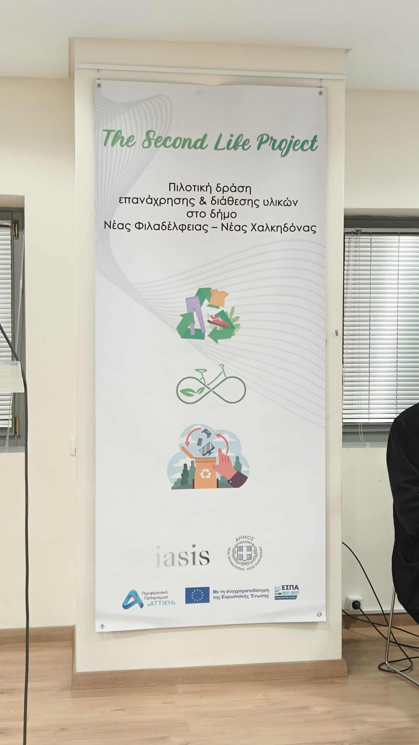 Πραγματοποιήθηκε χθες Παρασκευή η ενημερωτική εκδήλωση για το “The Second Life Project”. Πρόκειται για μια πιλοτική δράση επανάχρησης ρούχων, ποδηλάτων και tablets για την υλοποίηση της οποίας συνεργάστηκαν η Περιφέρεια Αττικής, ο Δήμος Νέας Φιλαδέλφειας – Νέας Χαλκηδόνας και η ΑΜΚΕ ΙΑΣΙΣ.