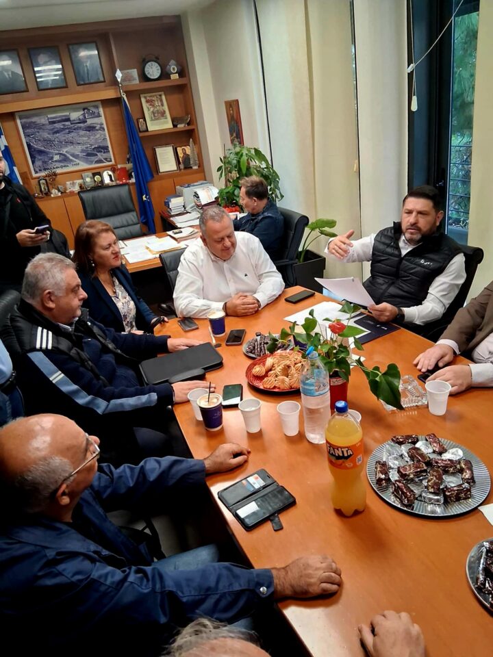Στη σύσκεψη που πραγματοποιήθηκε στο Δημαρχιακό Μέγαρο, τον Περιφερειάρχη συνόδευαν ο Αντιπεριφερειάρχης Κεντρικού Τομέα Αθηνών, Γιώργος Βλάχος, και η Ειδική Γραμματέας της Περιφέρειας Αττικής, Έλενα Ράπτη.