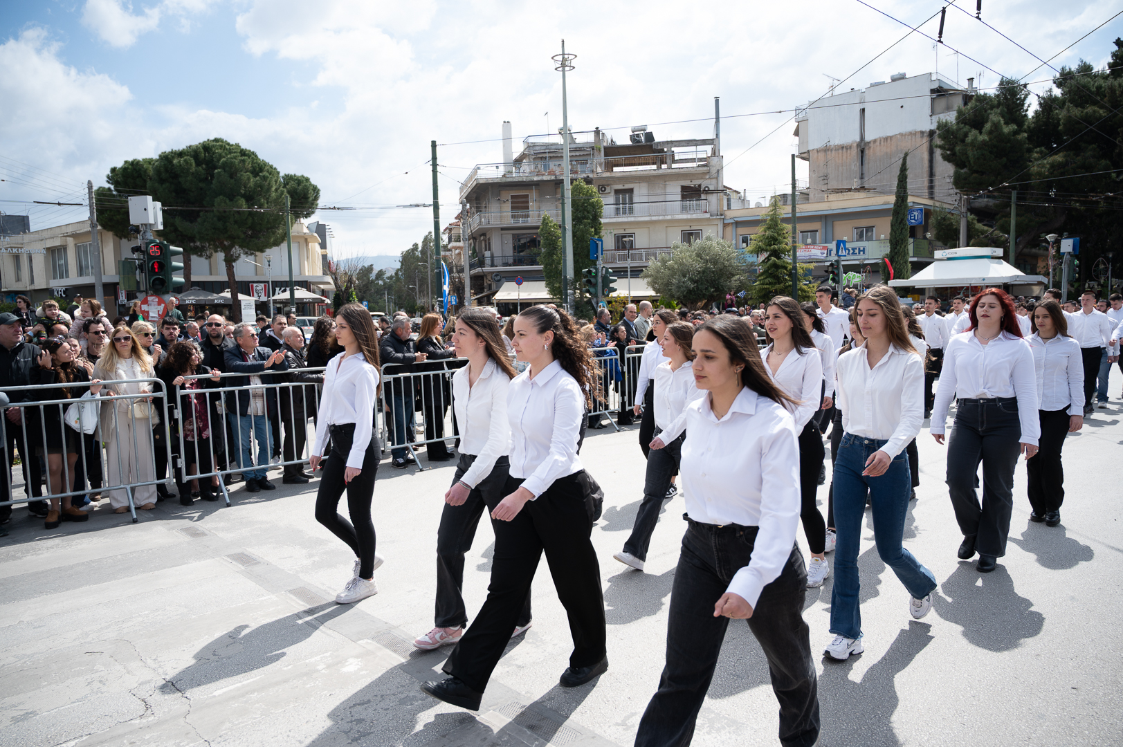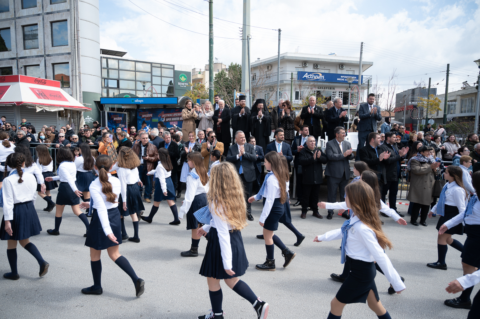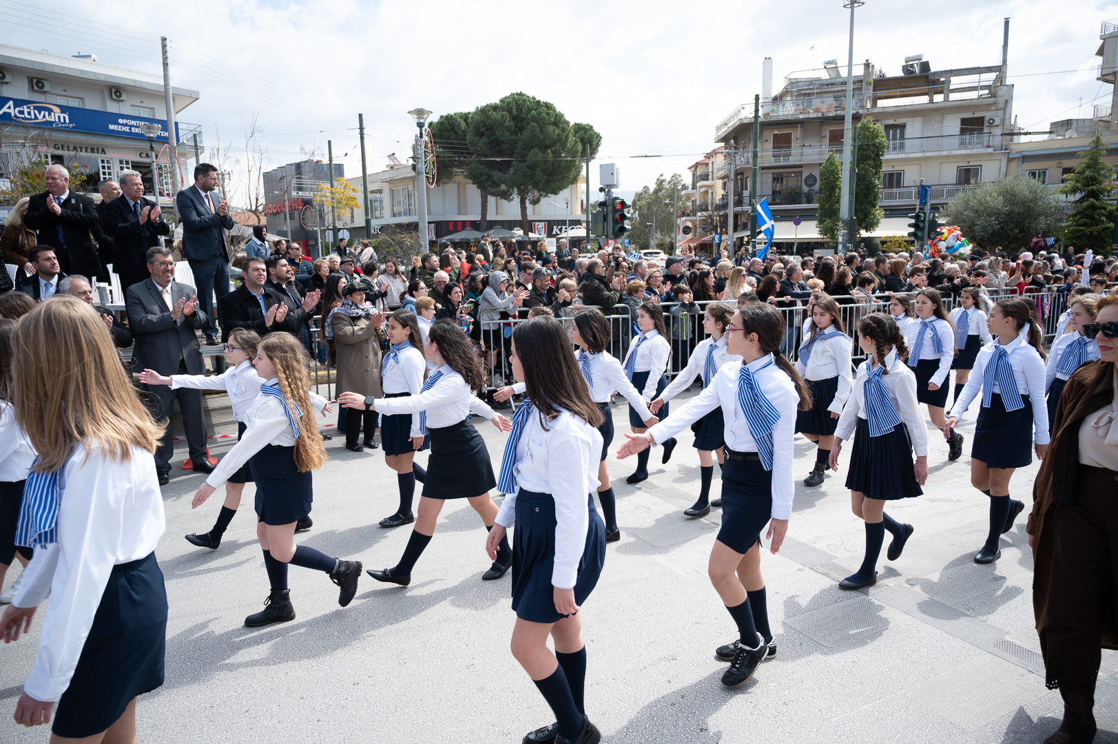 Στη συνέχεια, σχολεία και σύλλογοι της πόλης παρέλασαν υπό την εκφώνηση του τελετάρχη κ. Μπέτζελου. Οι εορτασμοί συνεχίστηκαν στη κεντρική λεωφόρο, όπου το χορευτικό τμήμα του δήμου παρουσίασε παραδοσιακούς χορούς από διάφορες περιοχές της Ελλάδας.