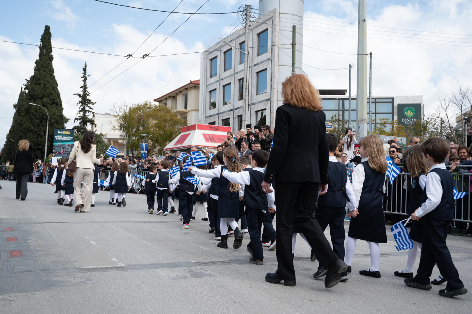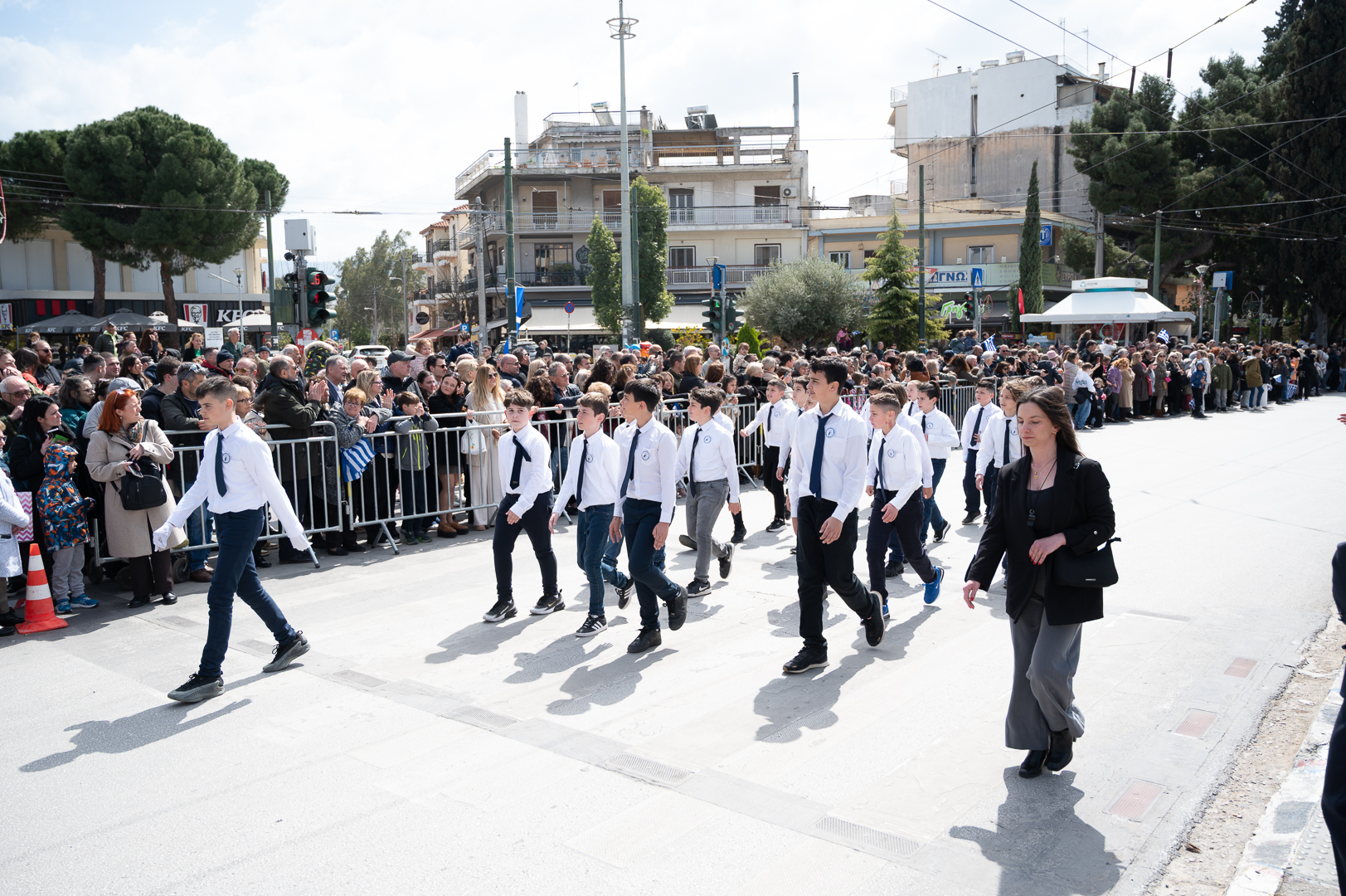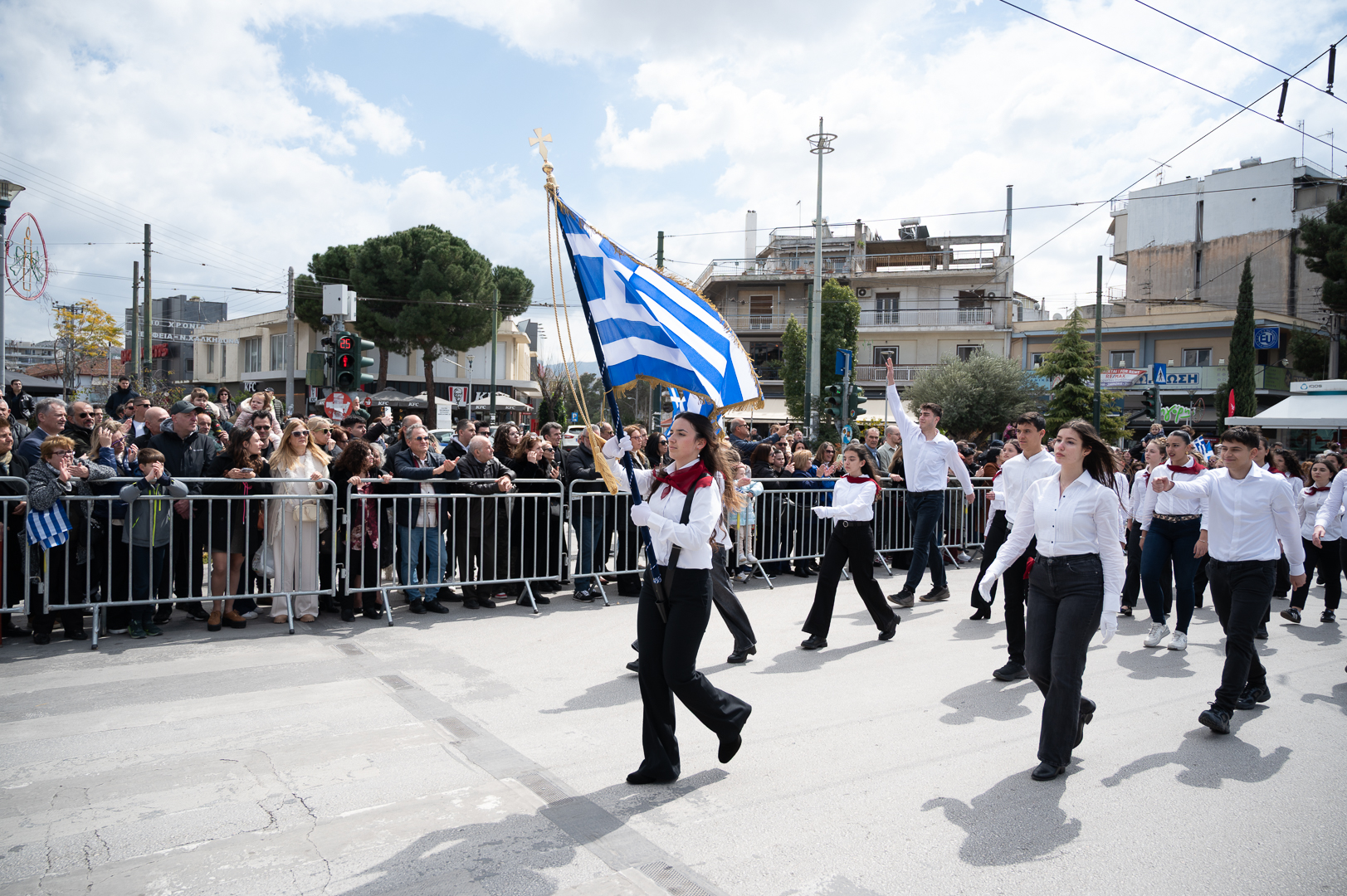 Στη συνέχεια, σχολεία και σύλλογοι της πόλης παρέλασαν υπό την εκφώνηση του τελετάρχη κ. Μπέτζελου. Οι εορτασμοί συνεχίστηκαν στη κεντρική λεωφόρο, όπου το χορευτικό τμήμα του δήμου παρουσίασε παραδοσιακούς χορούς από διάφορες περιοχές της Ελλάδας.