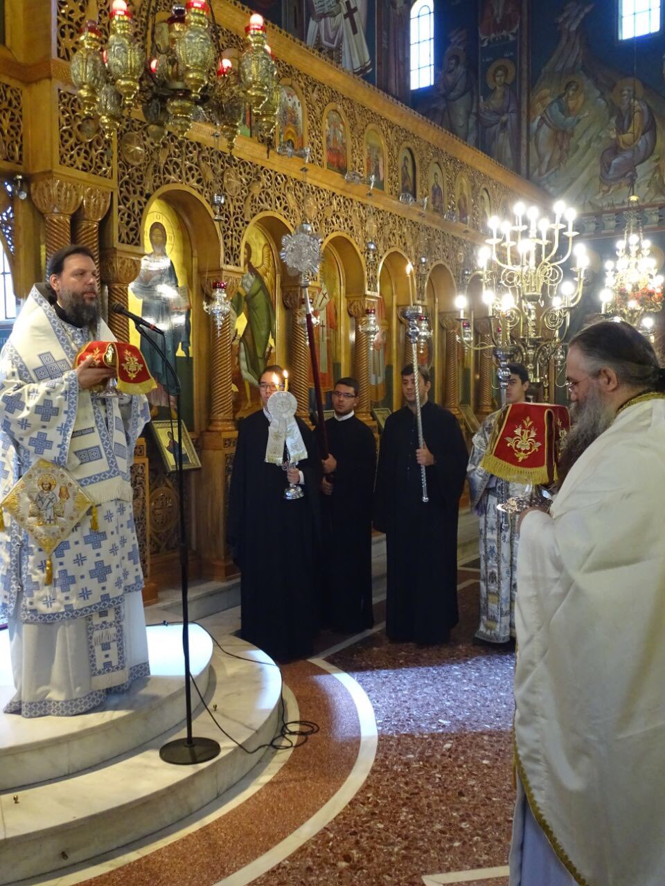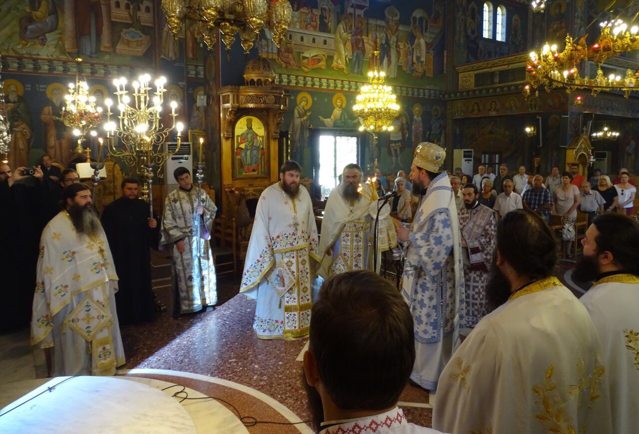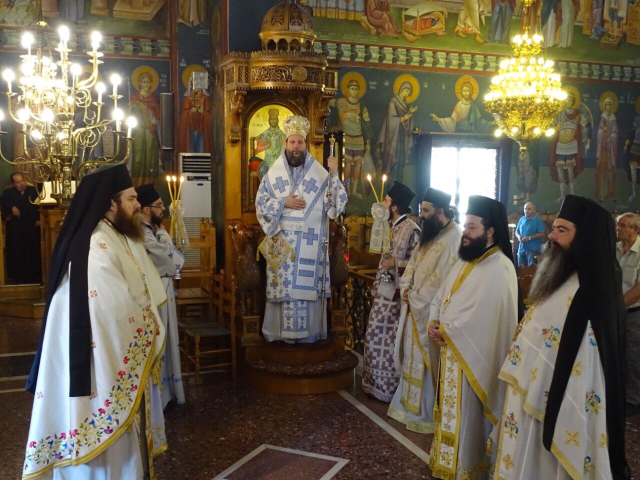 Ο Σεβασμιώτατος Μητροπολίτης Νέας Ιωνίας και Φιλαδελφείας κ. Γαβριήλ χοροστάτησε στην ακολουθία του Όρθρου και στη συνέχεια τέλεσε την Πανηγυρική Θεία Λειτουργία, πλαισιούμενος από τον Πανοσιολογιώτατο Καθηγούμενο της Ι.Μ. Εσφιγμένου Αγ. Όρους Γέροντα Βαρθολομαίο και κληρικούς της Ιεράς Μητροπόλεως.