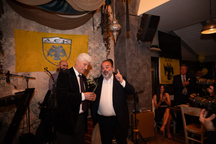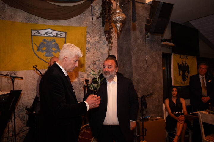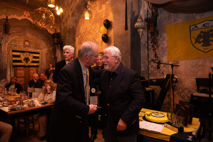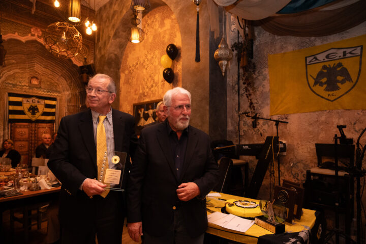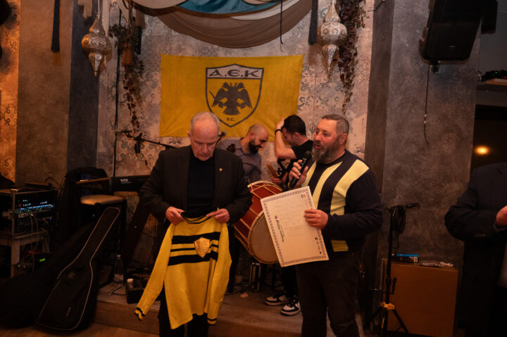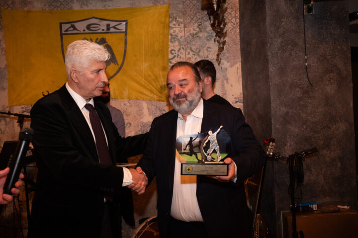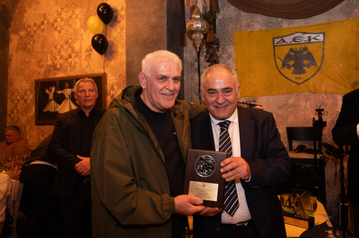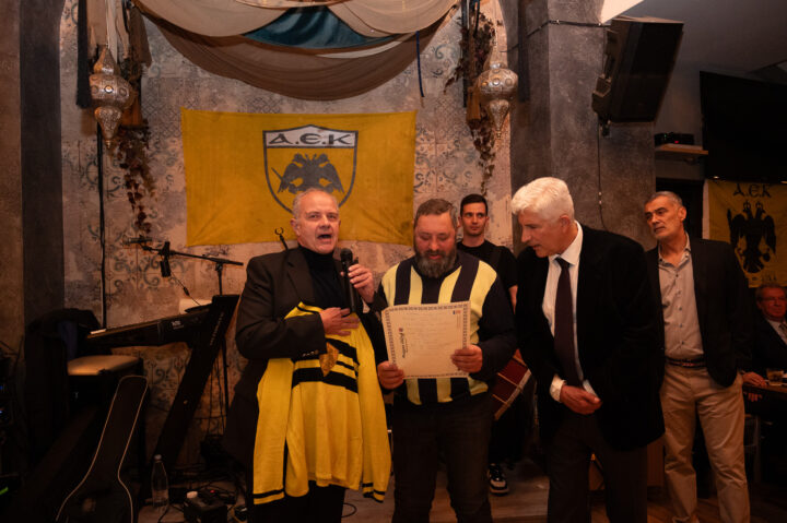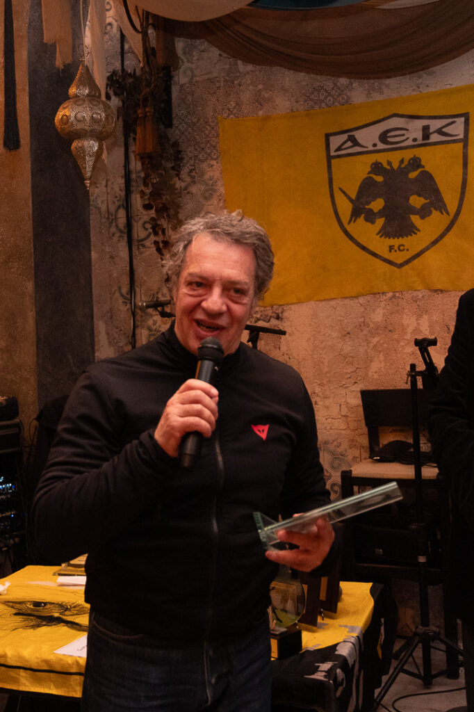 Κατά τη διάρκεια της γιορτής, ο Στέλιος Μανωλάς, πρόεδρος του συνδέσμου και εμβληματική μορφή του συλλόγου, βράβευσε τον κ. Ηλιόπουλο για τη συνεισφορά του , τονιζοντας :“Ο Ηλιόπουλος είναι ένας ιδιοκτήτης γεμάτος συναισθήματα, έτσι μας αγκάλιαζαν παλιά οι πρόεδροι στην ΑΕΚ” . Ξεχωριστή ήταν η στιγμή που έδωσε ο πρόεδρος της ΠΑΕ ΑΕΚ Μάριος Ηλιόπουλος ένα κλαδί έλιας στον πρόεδρο Στέλιο Μανωλά δηλώνοντας:”Θα σου δώσω ό,τι πιο ιερό και πιο συγκλονιστικό σε σχέση με την Αρχαία Ελλάδα, τα ιδεώδη και το ευ αγωνίζεσθαι. Ένα κλαδί ελιάς, σύμβολο άμυλας και ειρήνης. Δεν θέλουμε βία. Τη βία να τη μετατρέπουμε σε αγωνιστικό πάθος, πείσμα, κατάκτηση, νίκη και ειρήνη” .