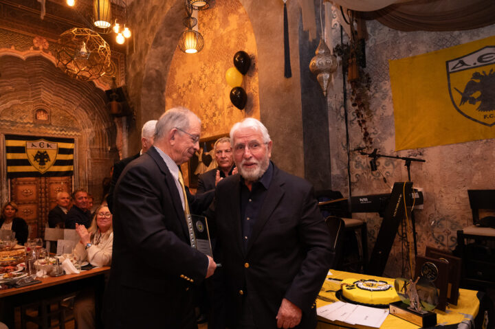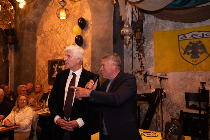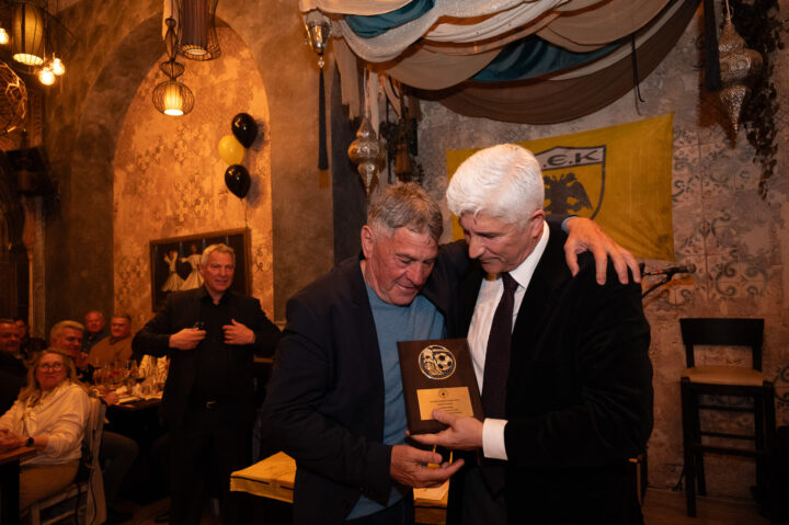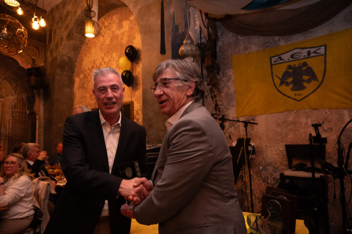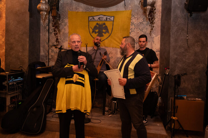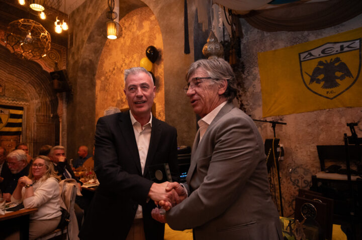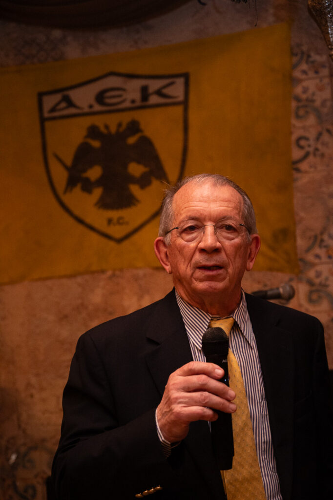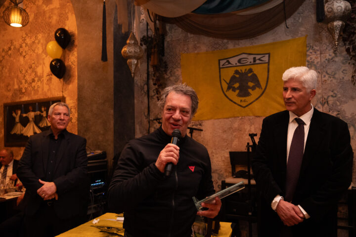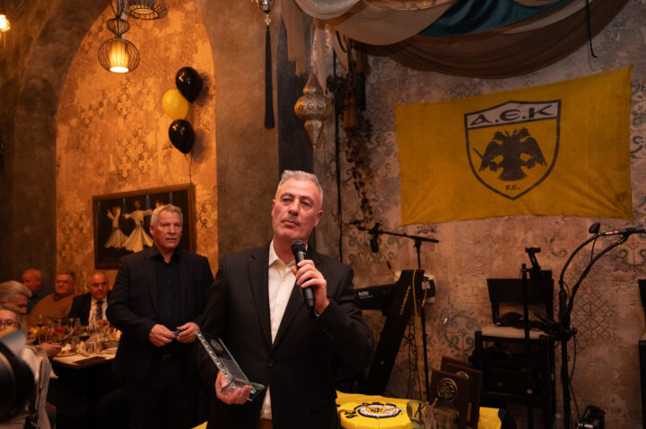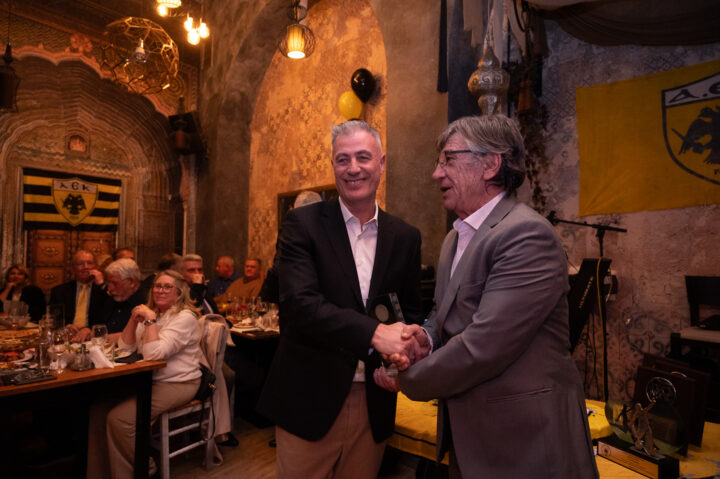 Κατά τη διάρκεια της γιορτής, ο Στέλιος Μανωλάς, πρόεδρος του συνδέσμου και εμβληματική μορφή του συλλόγου, βράβευσε τον κ. Ηλιόπουλο για τη συνεισφορά του , τονιζοντας :“Ο Ηλιόπουλος είναι ένας ιδιοκτήτης γεμάτος συναισθήματα, έτσι μας αγκάλιαζαν παλιά οι πρόεδροι στην ΑΕΚ” . Ξεχωριστή ήταν η στιγμή που έδωσε ο πρόεδρος της ΠΑΕ ΑΕΚ Μάριος Ηλιόπουλος ένα κλαδί έλιας στον πρόεδρο Στέλιο Μανωλά δηλώνοντας:”Θα σου δώσω ό,τι πιο ιερό και πιο συγκλονιστικό σε σχέση με την Αρχαία Ελλάδα, τα ιδεώδη και το ευ αγωνίζεσθαι. Ένα κλαδί ελιάς, σύμβολο άμυλας και ειρήνης. Δεν θέλουμε βία. Τη βία να τη μετατρέπουμε σε αγωνιστικό πάθος, πείσμα, κατάκτηση, νίκη και ειρήνη” .