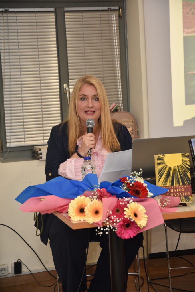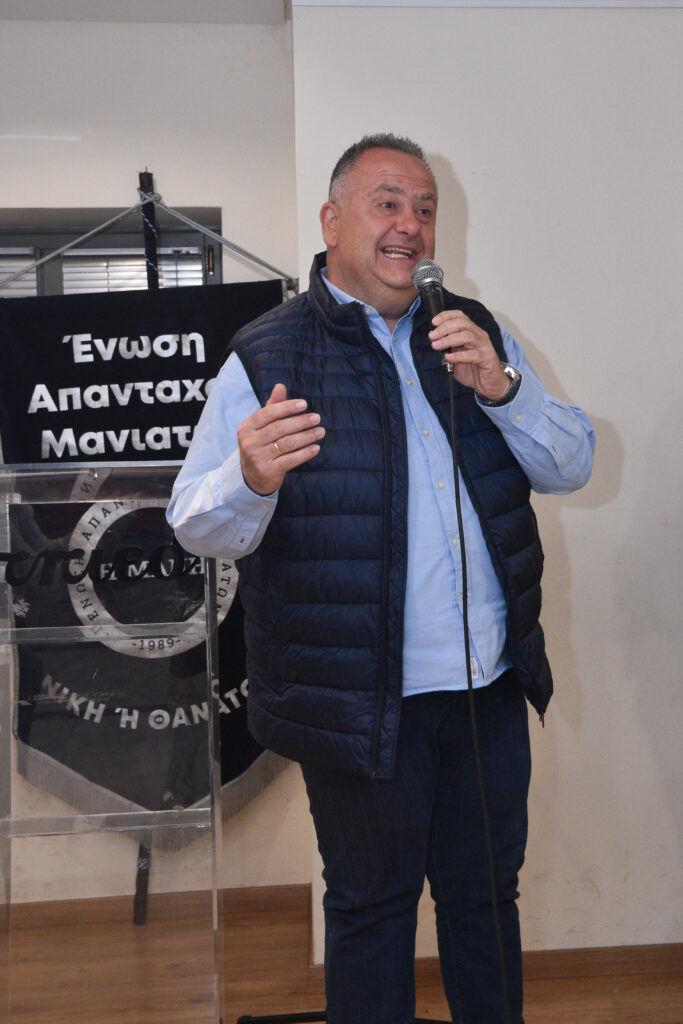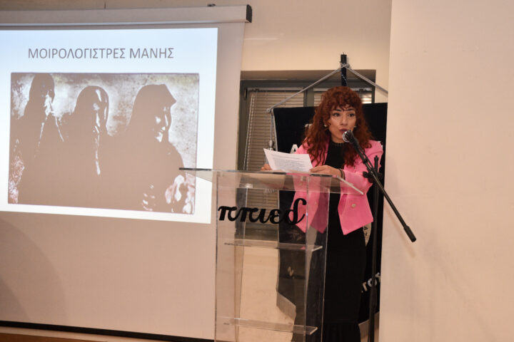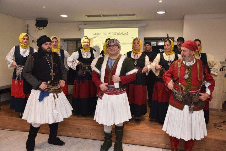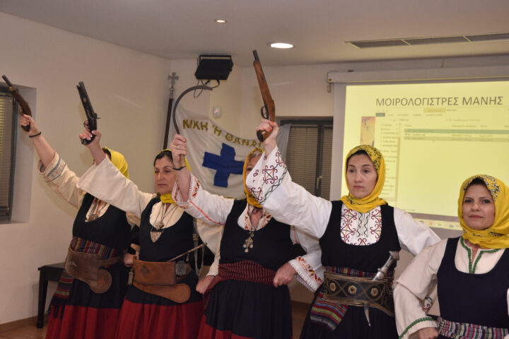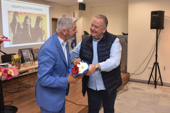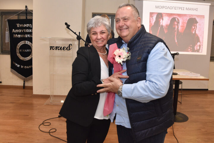 γλαφυρό και άμεσο, ενετρύφησε στα αντίστοιχα έθιμα της Μάνης, ευχαρίστησε τον δήμαρχο της πόλης Ιωάννη Τομπούλογλου, που κάθε χρόνο η Νέα Φιλαδέλφεια τιμά τη Μάνη στην Αρεόπολη κι ευχήθηκε στους Κρήτες, να καταφέρουν κι εκείνοι να αποσβέσουν εντελώς από την κοινωνία τους το τραγικό φαινόμενο του Σασμού.