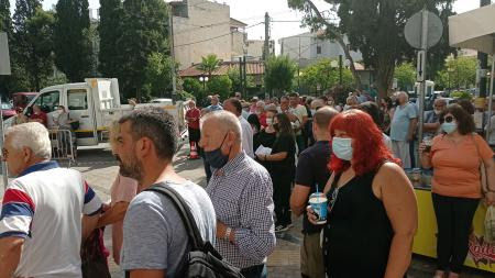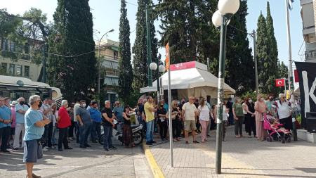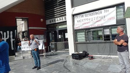 Στη συγκέντρωση συμμετείχαν μαζικοί φορείς και πλήθος κόσμου από την περιοχή, στηρίζοντας τον συμβολικό αποκλεισμό του Δημαρχείου την ώρα της συνεδρίασης της Οικονομικής Επιτροπής.
