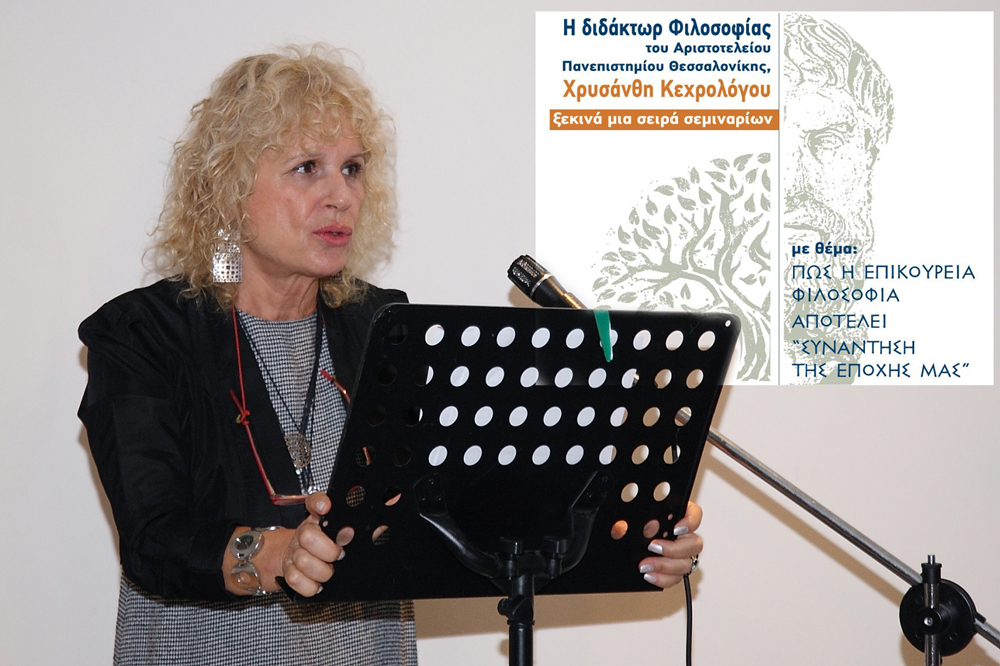 Η Διδάκτωρ Φιλοσοφίας του Αριστοτελείου Πανεπιστημίου Θεσσαλονίκης, Χρυσάνθη Κεχρολόγου, αναπτύσσει μια σειρά διαλέξεων σχετικά με την Επικούρεια Φιλοσοφία στον πρακτικό βίο.
