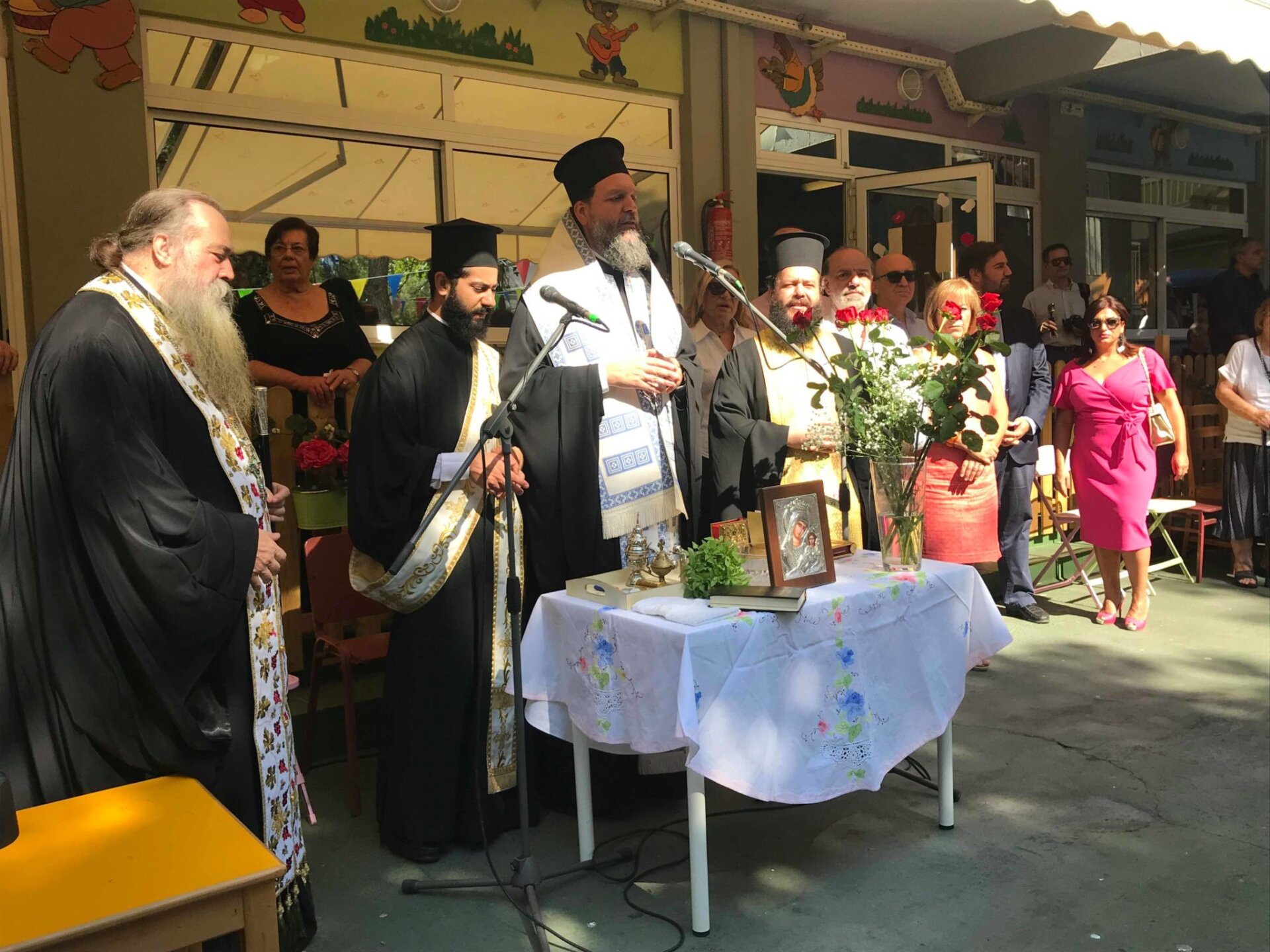 Στον σύντομo χαιρετισμό του ο Σεβασμιώτατος, απευθυνόμενος στους μαθητές, στους εκπαιδευτικούς, αλλά και στους γονείς εξέφρασε την ευαισθησία του για τον ευρύτερο χώρο της Ελληνικής Παιδείας, επισημαίνοντας την εμπιστοσύνη του στη νέα γενιά και ευχήθηκε προς όλους καλή και ευλογημένη σχολική χρονιά, με δύναμη, υπομονή, αλλά και όραμα, τονίζοντας πως τόσο ο ίδιος, όσο και οι Ενορίες της Ιεράς Μητροπόλεως θα βρίσκονται πάντοτε στο πλευρό τους, ενισχύοντας τον αγώνα τους.