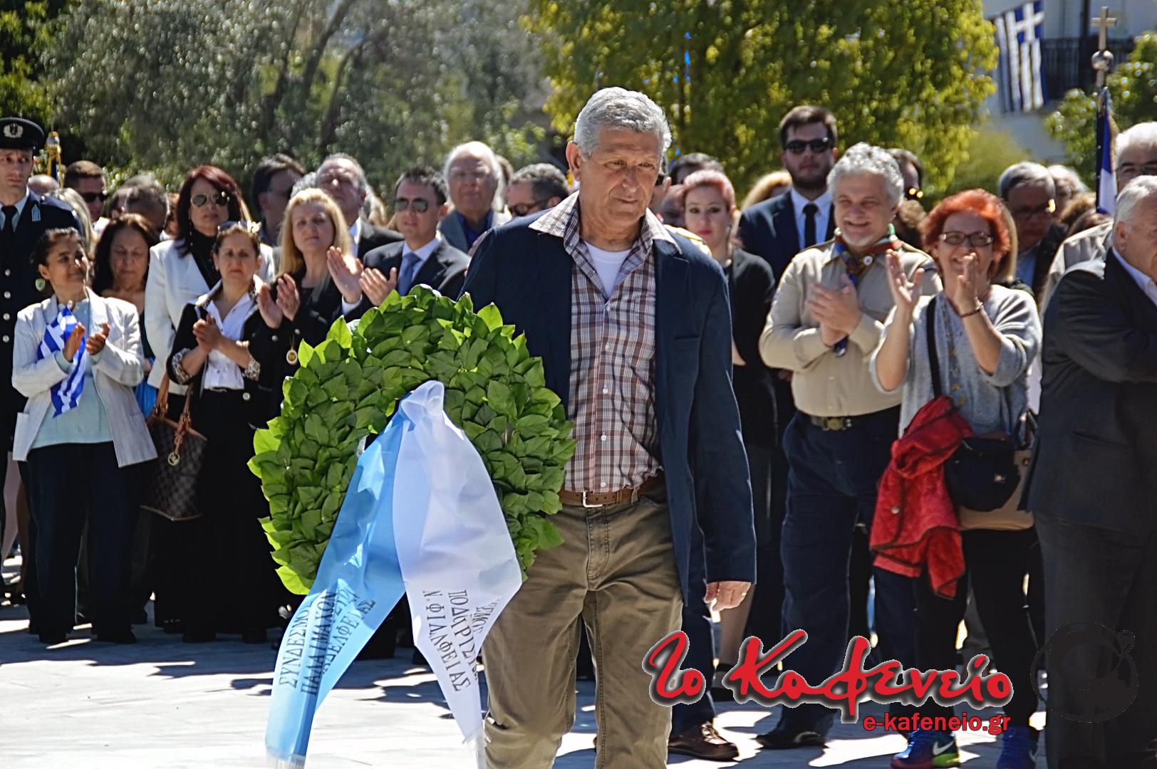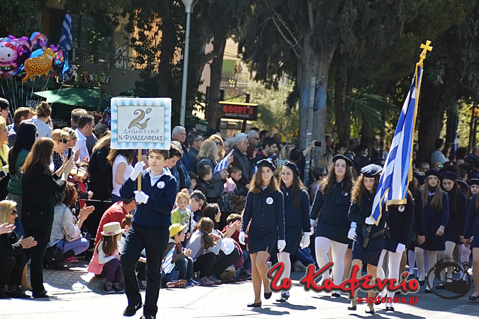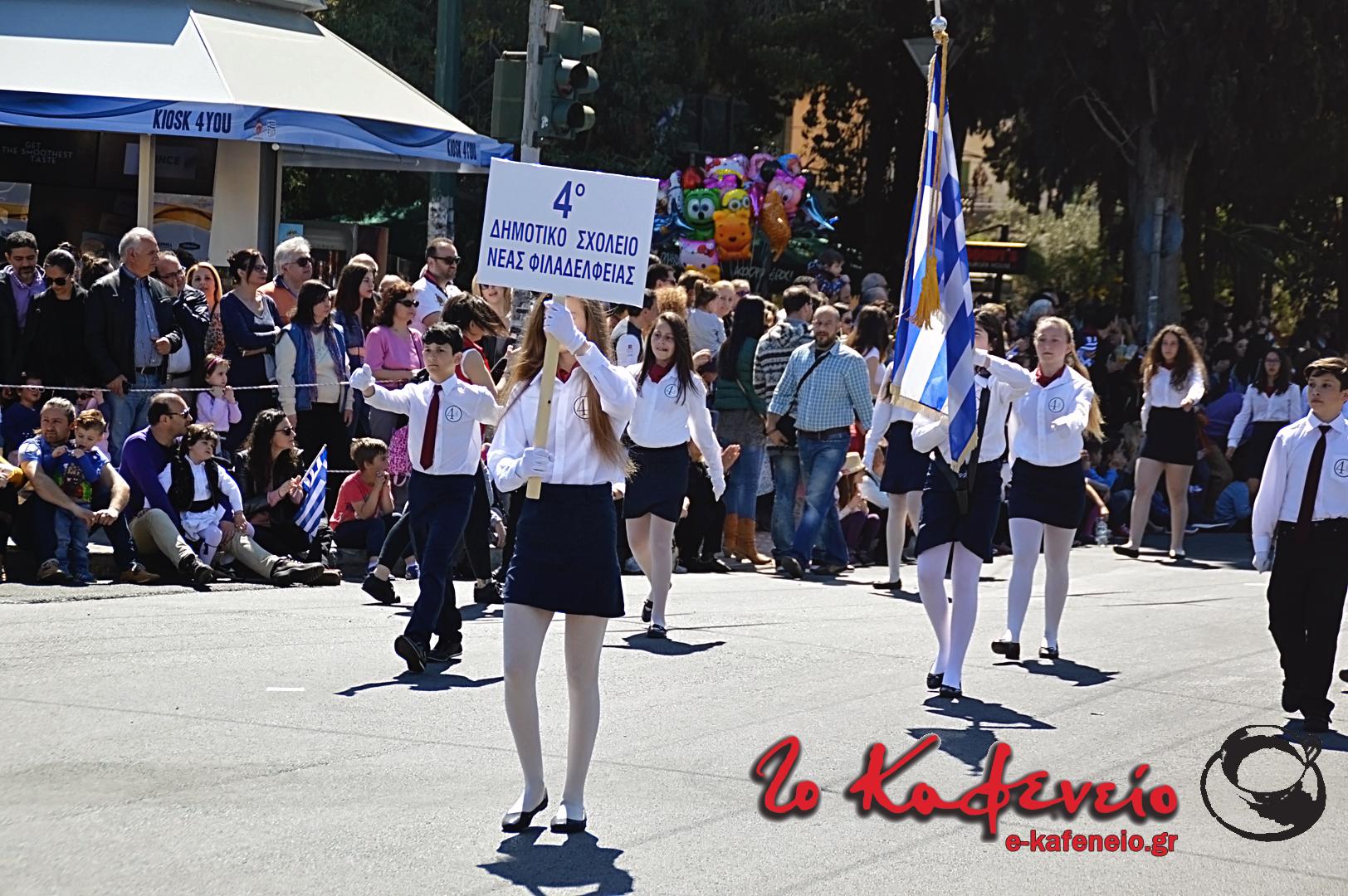 Μετά την δοξολογία στον Ιερό Ναό Κοιμήσεως Θεοτόκου στην Ν. Φιλαδέλφεια, ακολούθησε η καθιερωμένη κατάθεση στεφάνων στο Μνημείο Ηρώων. Ο Δήμαρχος Α. Βασιλόπουλος στον πανηγυρικό του λόγο τόνισε “Για να μπουν τα θεμέλια της ελεύθερης και σύγχρονης πατρίδας μας, ο ελληνικός λαός επαναστάτησε […] Το πιο βαθύ σκοτάδι είναι πριν την αυγή”. Καθ’ όλη τη διάρκεια του πανηγυρικού λόγου του Δημάρχου αλλά και της κατάθεσης των στεφάνων από εκπροσώπους φορέων και συλλόγων του Δήμου μας, οπαδοί της ΑΕΚ φώναζαν αποδοκιμαστικά συνθήματα κατά του Δημάρχου και της δημοτικής αρχής.