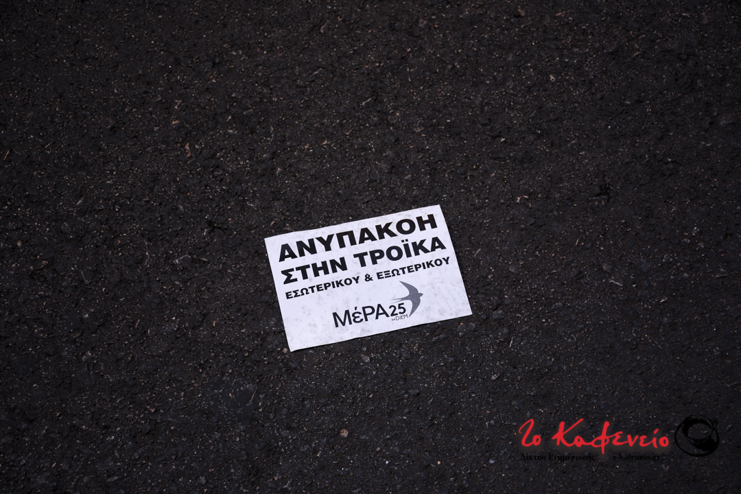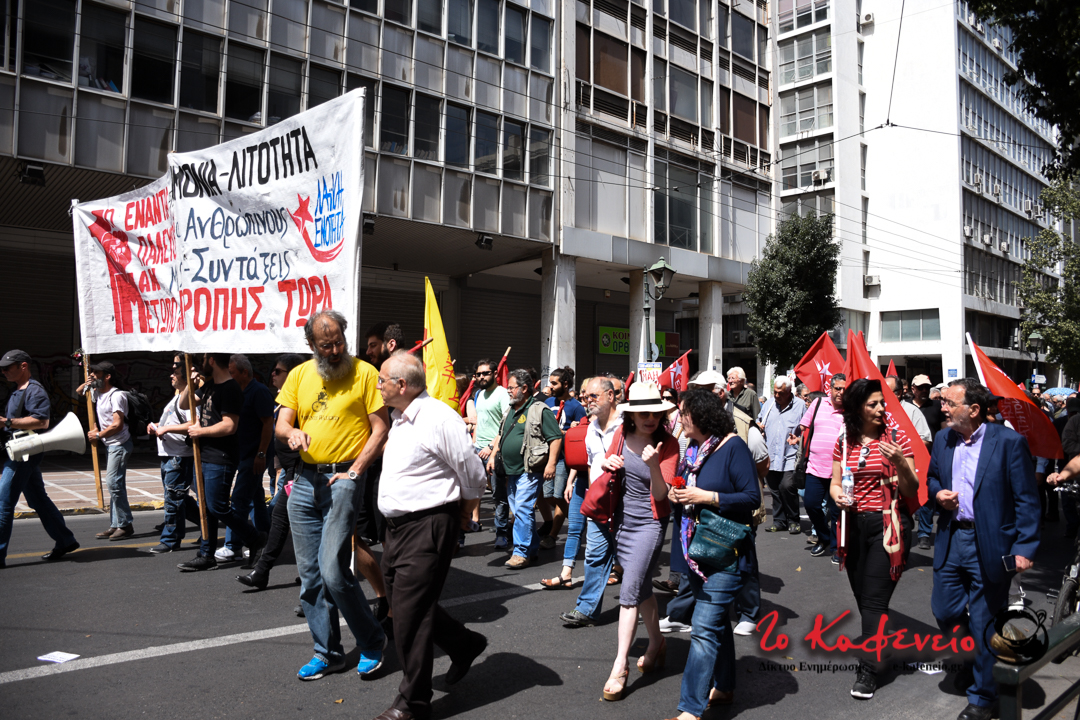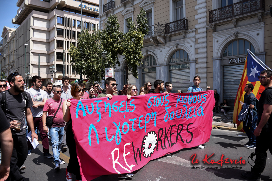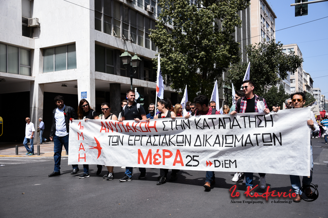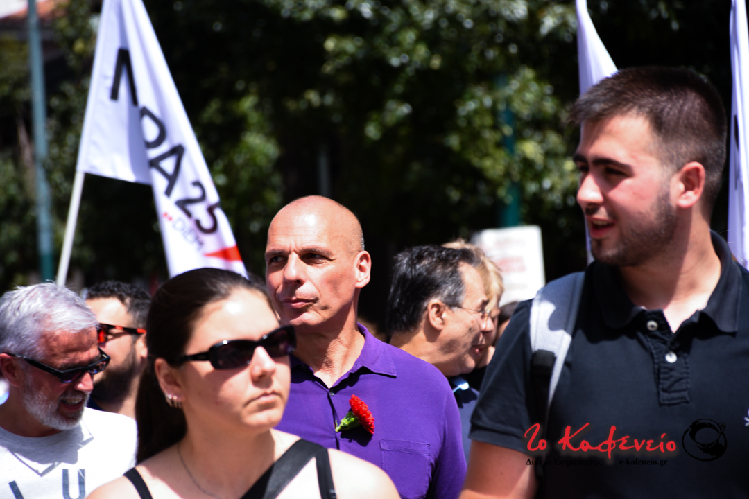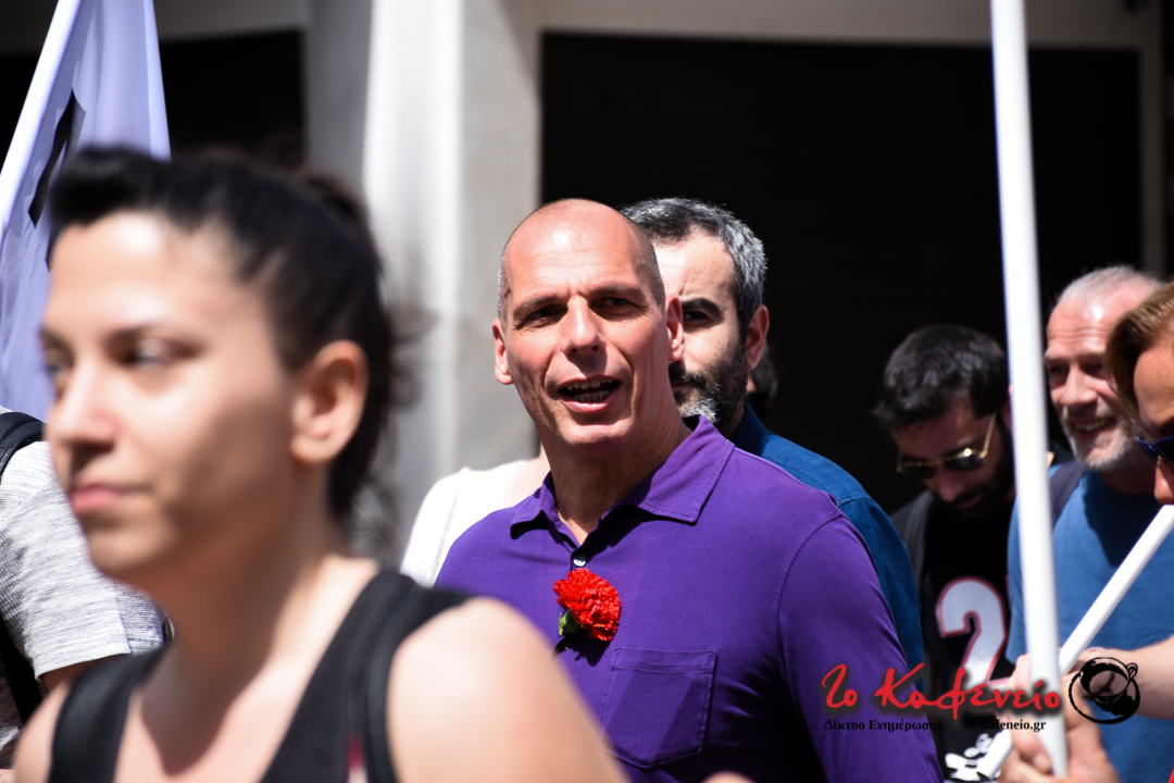 Στο πλευρό των διαδηλωτών και ο πρώην Υπουργός Οικονομικών Γιάνης Βαρουφάκης με το κόμμα του “Diem25”. Με σύνθημα «Πρώτη Μάη – Ανυπακοή στην καταπάτηση των εργασιακών δικαιωμάτων» ακολούθησαν την πορεία της ΓΣΕΕ.