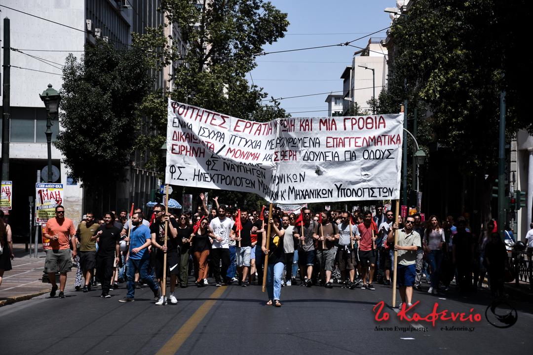 Ολοκληρώθηκαν οι πορείες στο κέντρο της Αθήνας για την Εργατική Πρωτομαγιά που οδήγησαν τους διαδηλωτές στην πρεσβεία των ΗΠΑ.