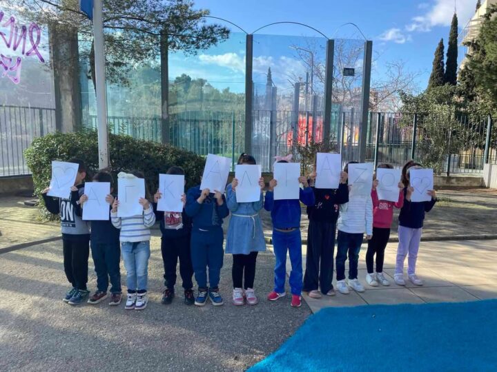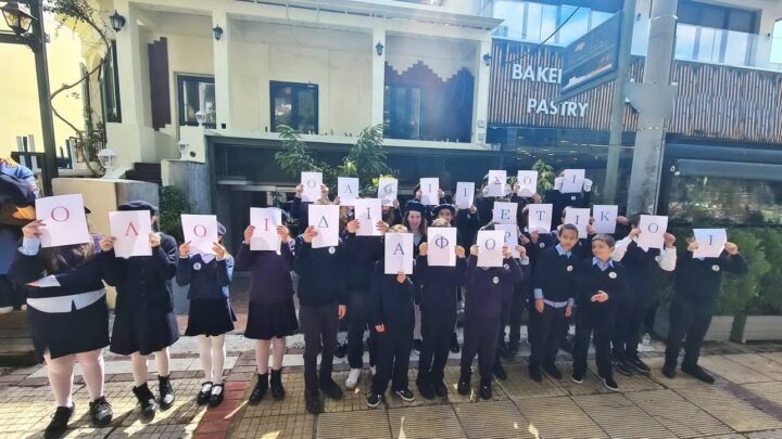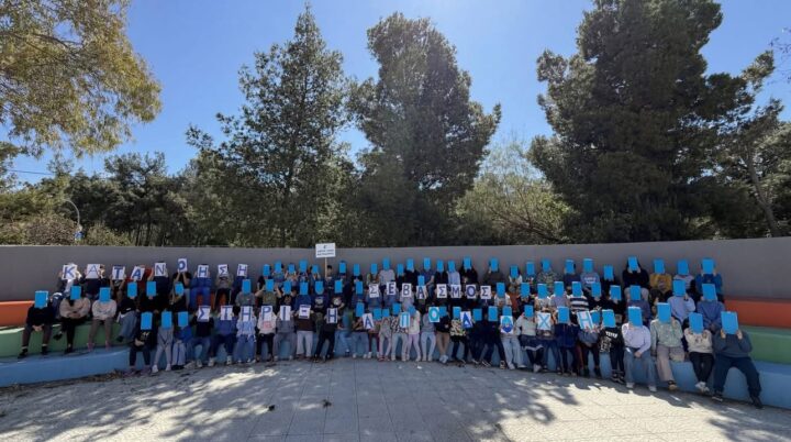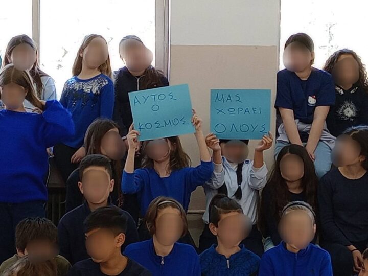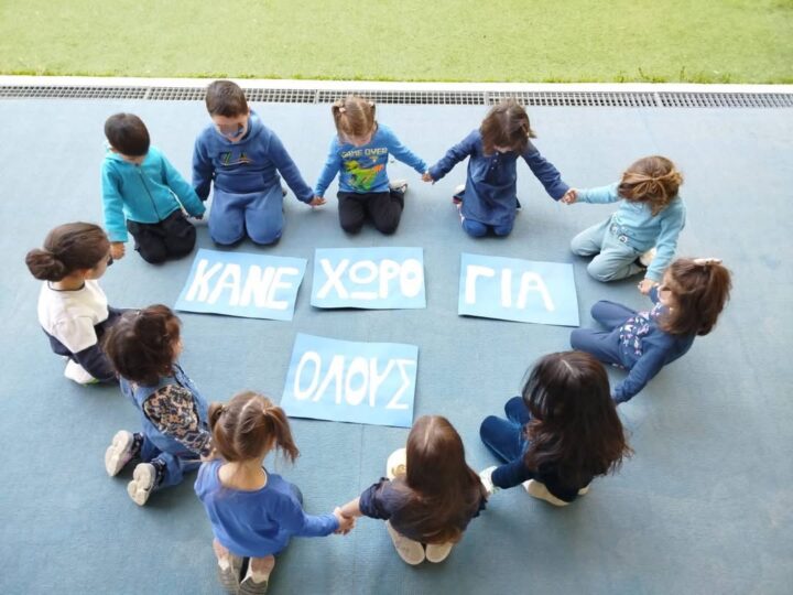 Μαθητές και εκπαιδευτικοί συμμετείχαν ενεργά, φορώντας μπλε ρούχα και