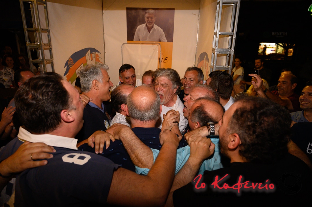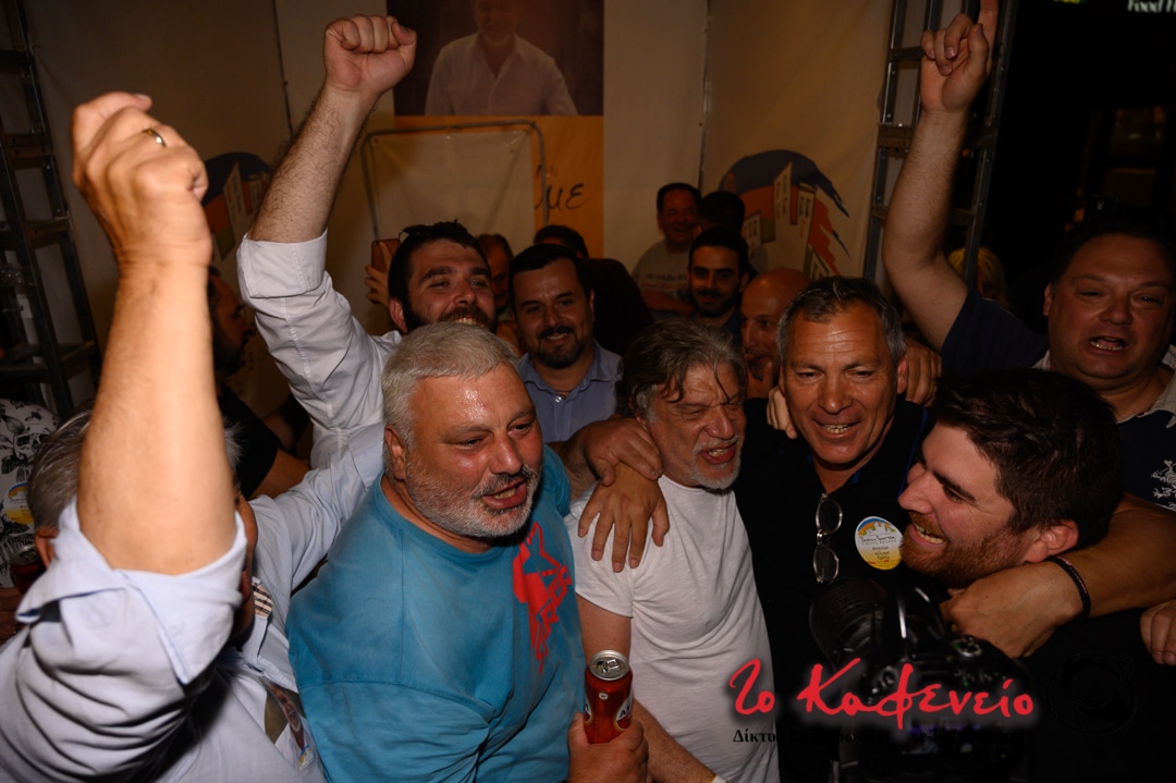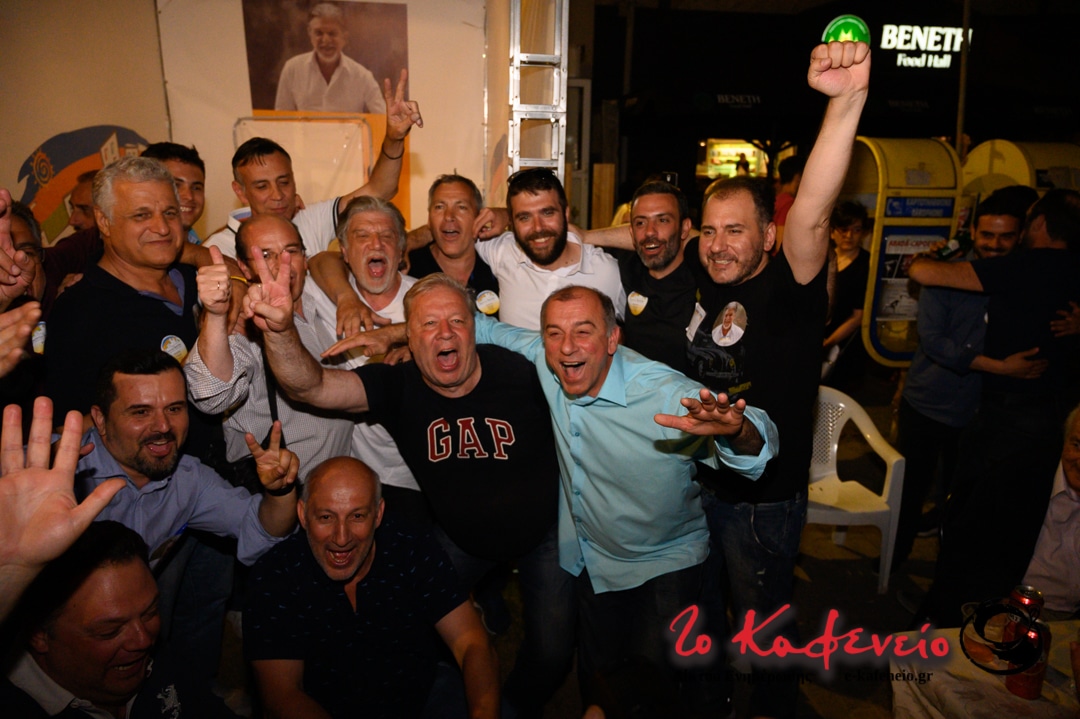Με την ολοκλήρωση των αποτελεσμάτων ακολούθησαν πανηγυρισμοί στο περίπτερο της παράταξης στην πλατεία Πατριάρχου.