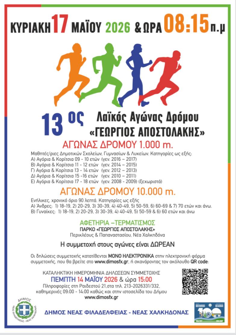 Δήμου Νέας Φιλαδέλφειας – Νέας Χαλκηδόνας, προκηρύσσει τη διοργάνωση του 13 ου Λαϊκού