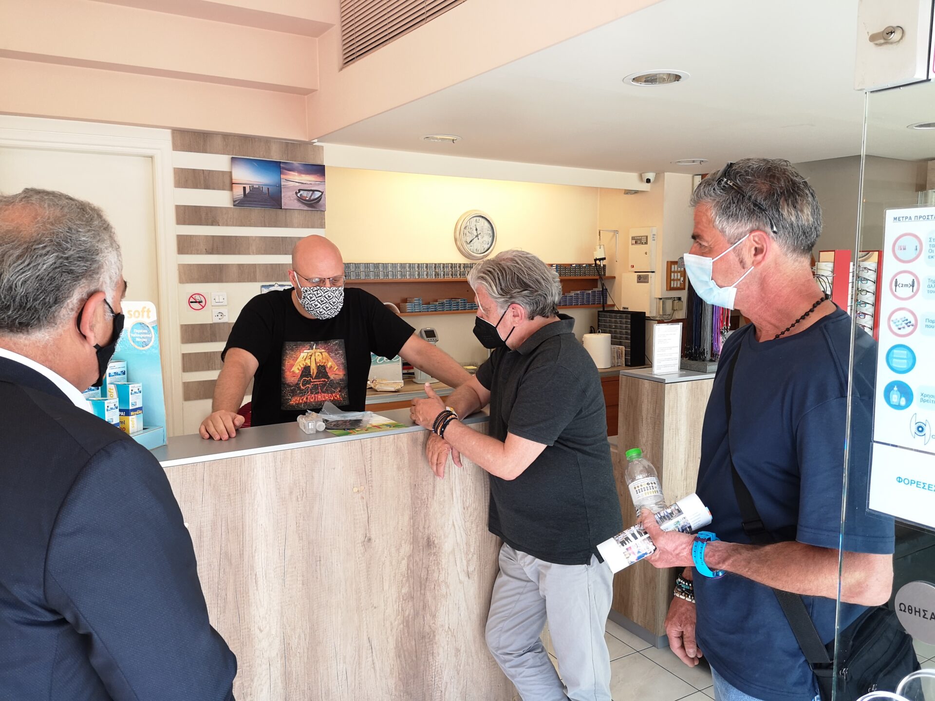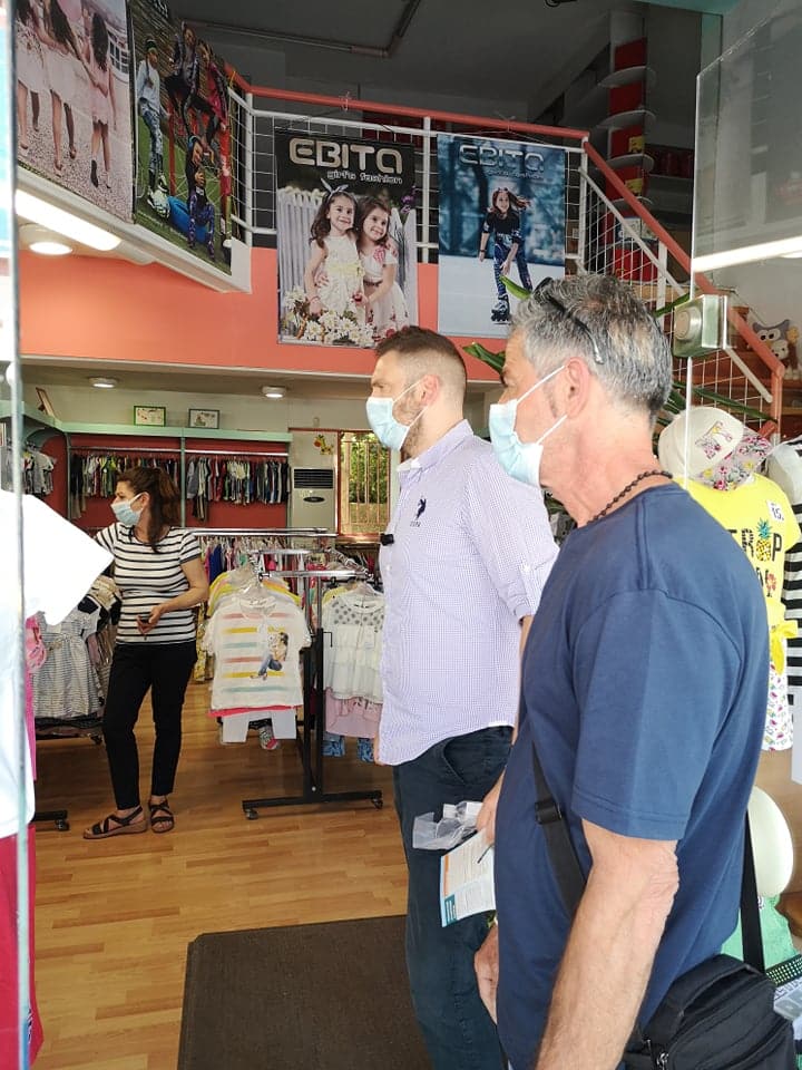 Στη συνέχεια τα μέλη της Διοίκησης του Ε.Ε.Α. μαζί με τον Δήμαρχο Νέας Φιλαδέλφειας – Νέας Χαλκηδόνας επισκέφθηκαν καταστήματα της περιοχής, όπου μοίρασαν υγειονομικό και ενημερωτικό υλικό, και συζήτησαν με επαγγελματίες και εργαζόμενους.
