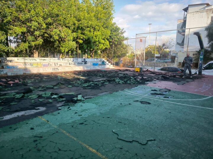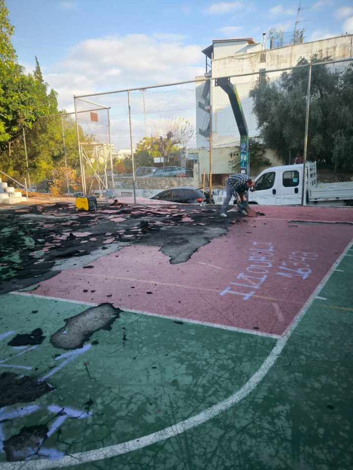 γήπεδο μπάσκετ της οδού Δωδεκανήσου, στη Νέα Χαλκηδόνα. Το έργο εκτελείται